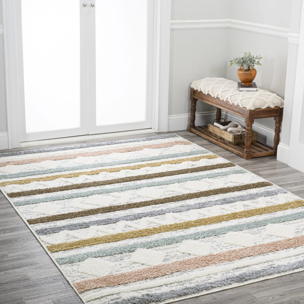 Absolutely love this rug! The mix of boho patterns and soft pastel colors adds such a cozy, stylish vibe to my living room. The dual pile heights give it amazing texture, and it’s super plush underfoot. Super easy to clean, too—perfect for high-traffic areas. The size is just right, and the quality feels premium. A total game-changer for any space!