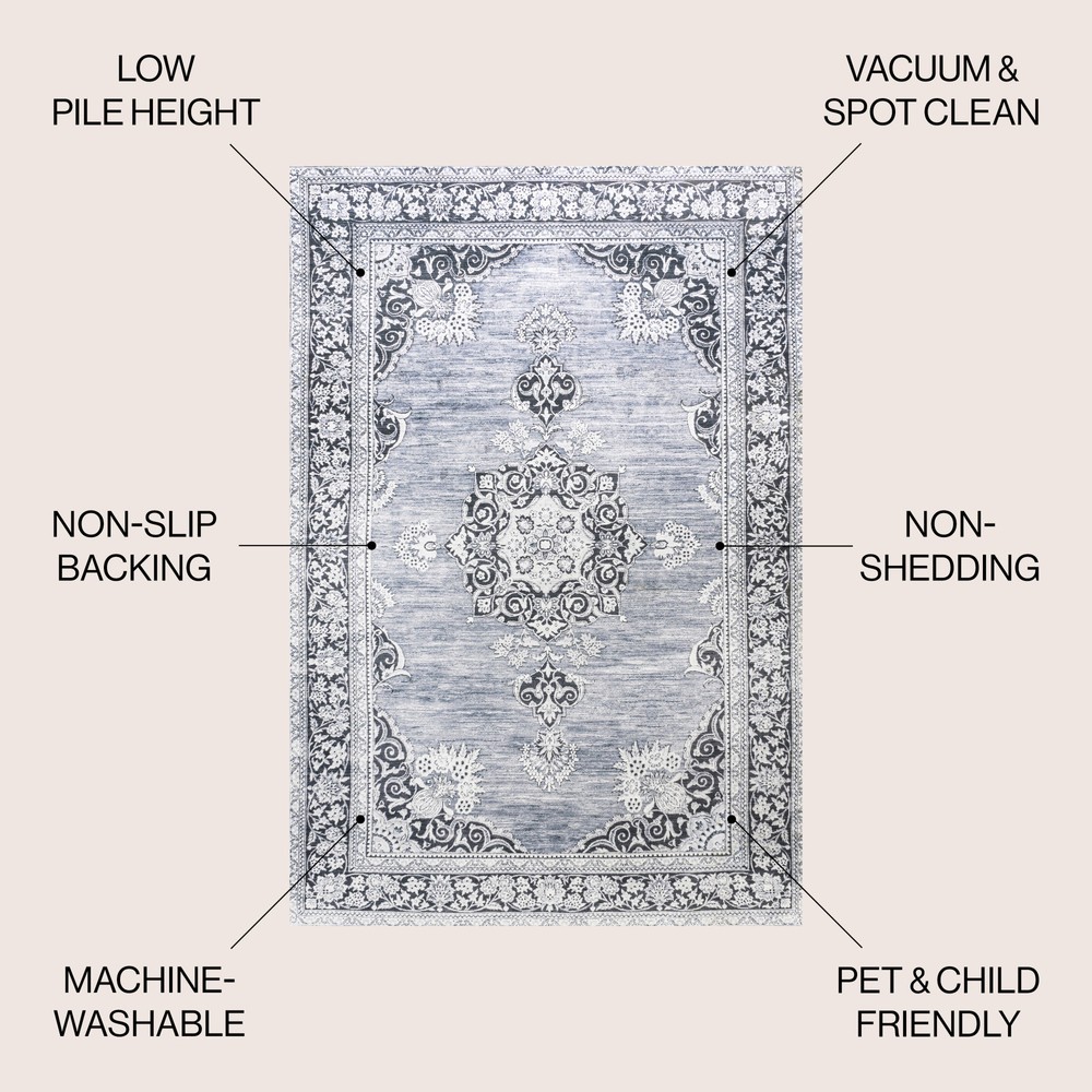 I absolutely love this rug! The distressed medallion design adds a cozy boho vibe to my living room, and the chenille feels soft underfoot. It stays perfectly in place thanks to the non-slip backing, and I was thrilled to find out it's machine washable—so convenient! The thickness is just right, giving comfort without being bulky. Perfect for high-traffic areas since it holds up well. A stylish and practical choice!