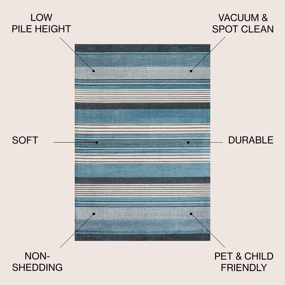 1. This rug is a game-changer! The gradient stripes add such a cool, modern vibe, and the polypropylene material makes it super durable—perfect for high-traffic areas, kids, and pets. The blue tones give off such a fresh, coastal feel, and it instantly brightens up any room. Plus, it’s soft underfoot but still easy to clean. Love how versatile it is—works with nautical, modern, or even cottage decor. Definitely worth it!