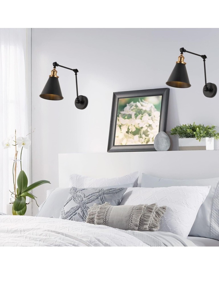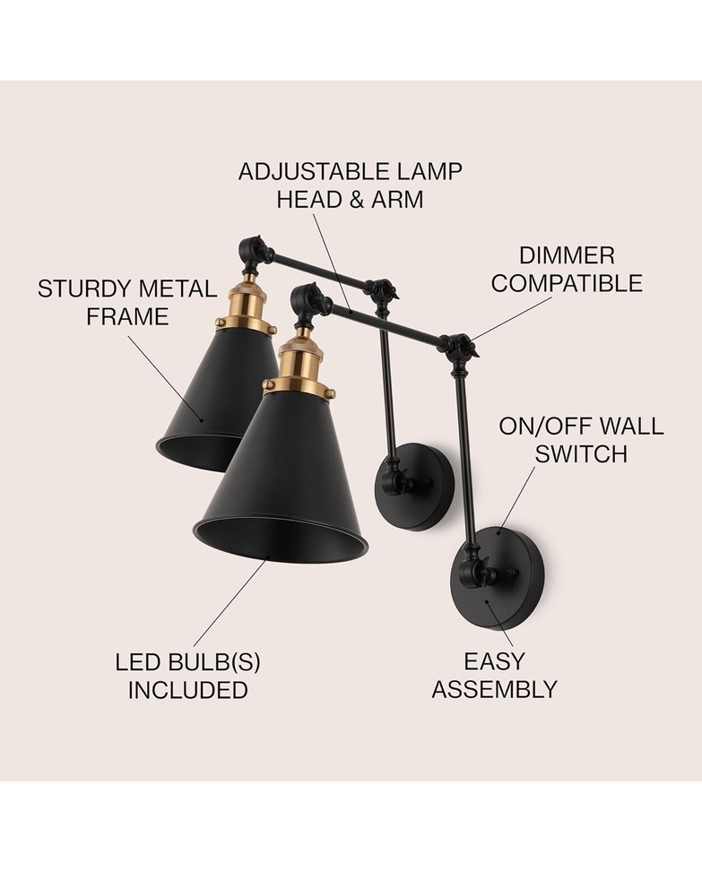 JONATHAN Y JYL7462A-SET2 Rover 7" Farmhouse Industrial Adjustable Arm Metal LED Wall Sconce Rustic Bohemian 2700K 4W Bulb for Entryway Lobby Kitchen Bathroom Bedroom Hallway, Black (Set of 2)
