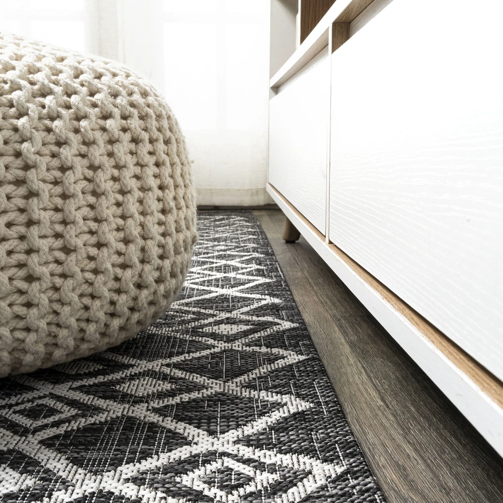 This rug is a game-changer! The soft, low-pile texture feels great underfoot, and the Moroccan-inspired geometric design adds a stylish, modern touch to any space. Perfect for both indoor and outdoor use, it’s durable yet cozy. The black and ivory color combo blends effortlessly with any decor, making it a versatile choice for living rooms, bedrooms, or even patios. Easy to clean and maintain, it’s as practical as it is beautiful. Love the boho-meets-modern vibe—definitely worth it!