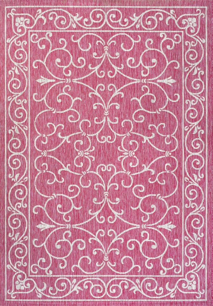 1. This rug adds instant charm to any space with its vintage-inspired pattern and rich red and gray tones. The flatweave design is sturdy enough for high-traffic areas, and the water-resistant material makes it great both indoors and out. The geometric iron gate motif gives it a stylish boho feel, and despite its textured look, it stays easy to clean. Perfect for a porch, patio, or even a cozy living room—love the handwoven vibe without the hefty price!