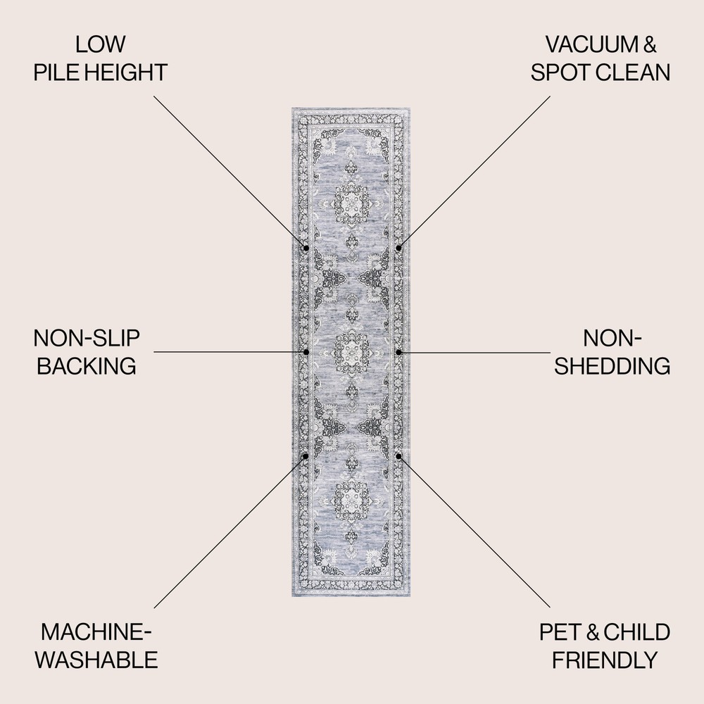 UPC: 840011479736 Type: Home Decor Material: Chenille Item Width: 24 MPN: WSH201D-28 Pattern: Refer to Item Photo gtin13: 840011479736 Item Length: 96 Model: WSH201-28 Size: 96" x 24" Color: Dark Gray / Blue Country/Region of Manufacture: Turkey Features: JONATHAN Y Lighting WSH201-28 Washable 2' x 8' Brand: JONATHAN Y Lighting