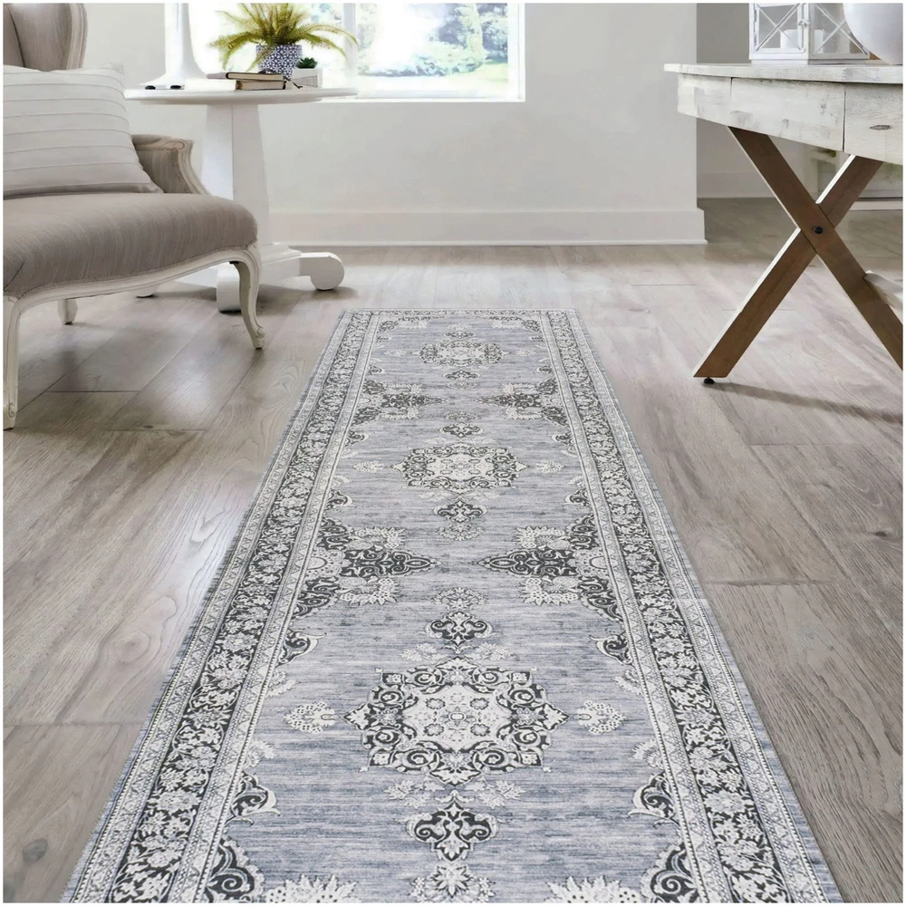 Jonathan Y Washable 2x8 Chenille Light in Dark Gray Blue