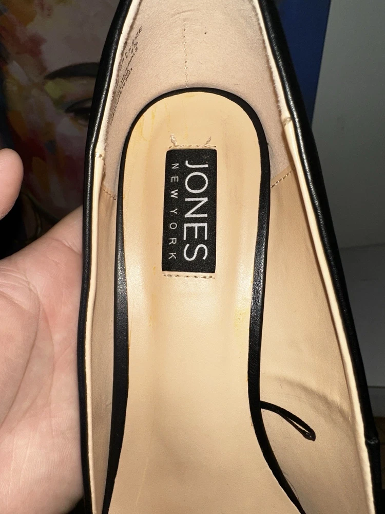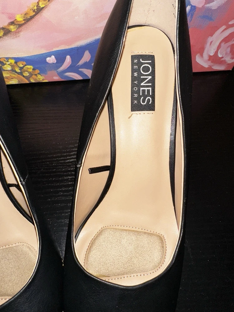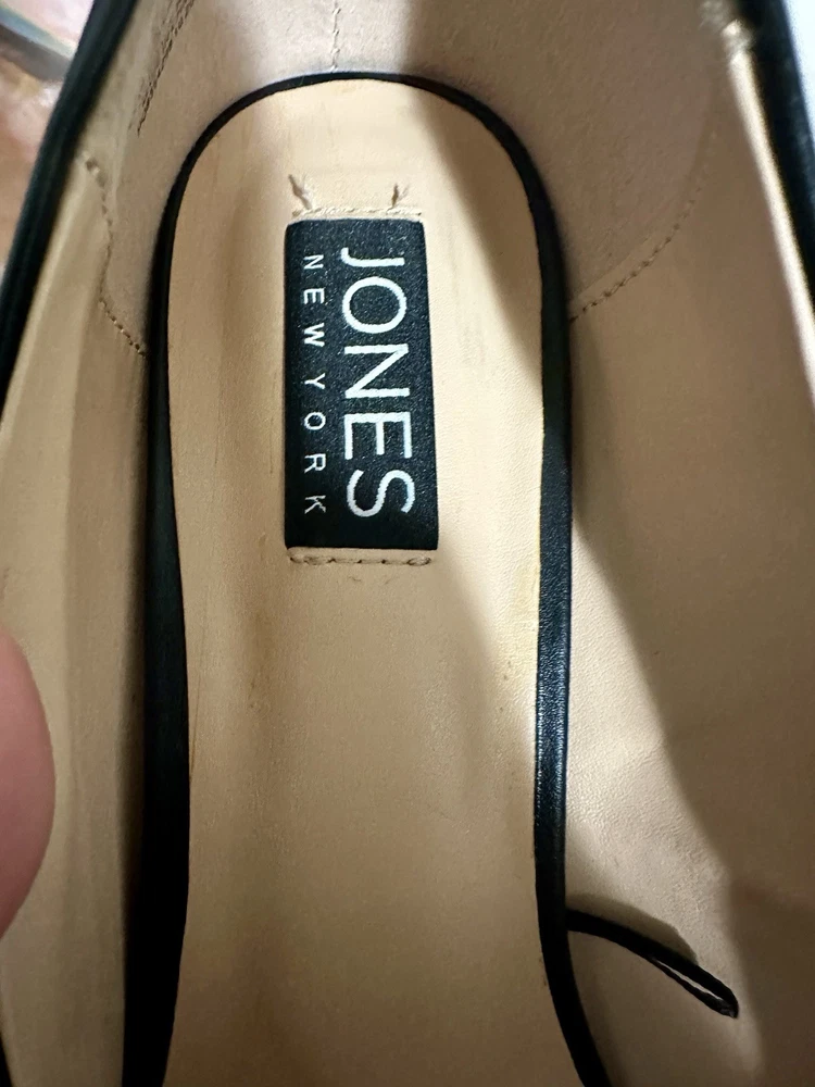 Department: Women Vintage: No Occasion: Party/Cocktail Brand: Jones New York Style: Pump Outsole Material: Leather Upper Material: Leather US Shoe Size: 9.5 Color: Black Personalize: No Customized: No Type: Heel