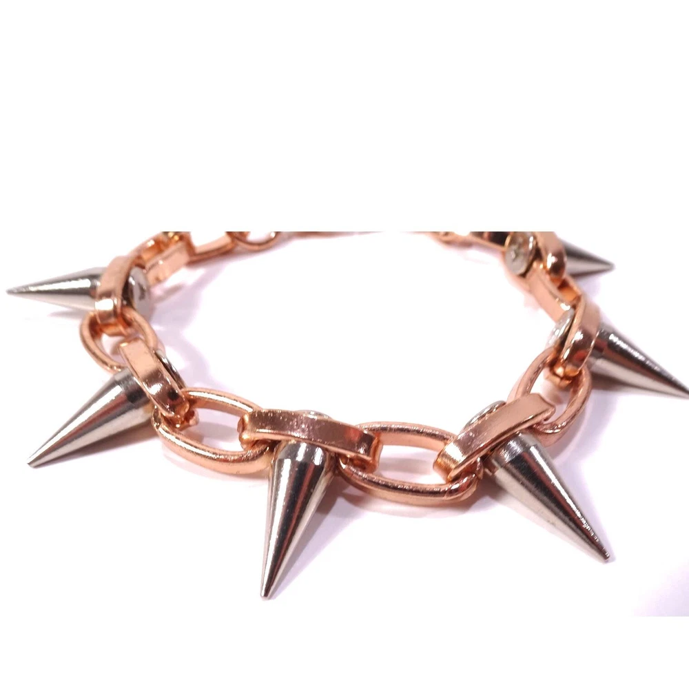 JOOMI LIM Single Row Spike Bracelet NWOT $159.00 Sold Individually Rose gold /rhodium SILVER Jommi Lim Chain and Spike Rose Gold and SILVER SPIKE plated bracelet. 3/4" Spikes in Holographic Blue. Measures 6 1/2" or with extension 7 1/2" ROSE GOLD AND SILVER CLASSIC JOOMI LIM CHARMED BRACELET STYLE DEFINING BRACELET In 2009, New York-based wife & husband duo Joomi Lim and Xavier Ricolfi launched a collection of daring, high-fashion jewelry that could easily be called rock-n-roll chic. Joomi's sensibility lends feminine and intricate details to the collection, while Xavier's industrial designer roots bring in unusual materials, finishes and cutting-edge technologies. Together, they create playful jewels with juxtaposing styles of hard-soft, sweet-sleek, uptown-downtown, and glam-rock. Equal parts elegant and edgy, this necklace will set the tone for any outfit and instantly elevate any look. We particularly like taking it out of its usual glamorous cocktail setting and wearing it with a simple t-shirt and jeans for unexpected polish.
