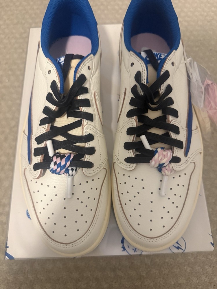 Brand: Jordan Customized: No Closure: Lace Up Vintage: No Insole Material: Foam Color: Ivory Shoe Shaft Style: Low Top Lining Material: Fabric Features: Comfort Performance/Activity: Basketball Pattern: Solid US Shoe Size: 11 Theme: Retro Product Line: Air Jordan Season: Fall Style: Sneaker Nickname: Sail Military Blue Occasion: Casual Country of Origin: Vietnam Model: Air Jordan 1 Shoe Width: Standard Department: Men Signed: No Pronation: Supination Release Date: 20251116 Type: Athletic Style Code: DM7866-104 Release Year: 2025 Manufacturer Color: Sail/Black/Muslin/Military Blue Cleat Type: Rubber Upper Material: Leather Outsole Material: Rubber