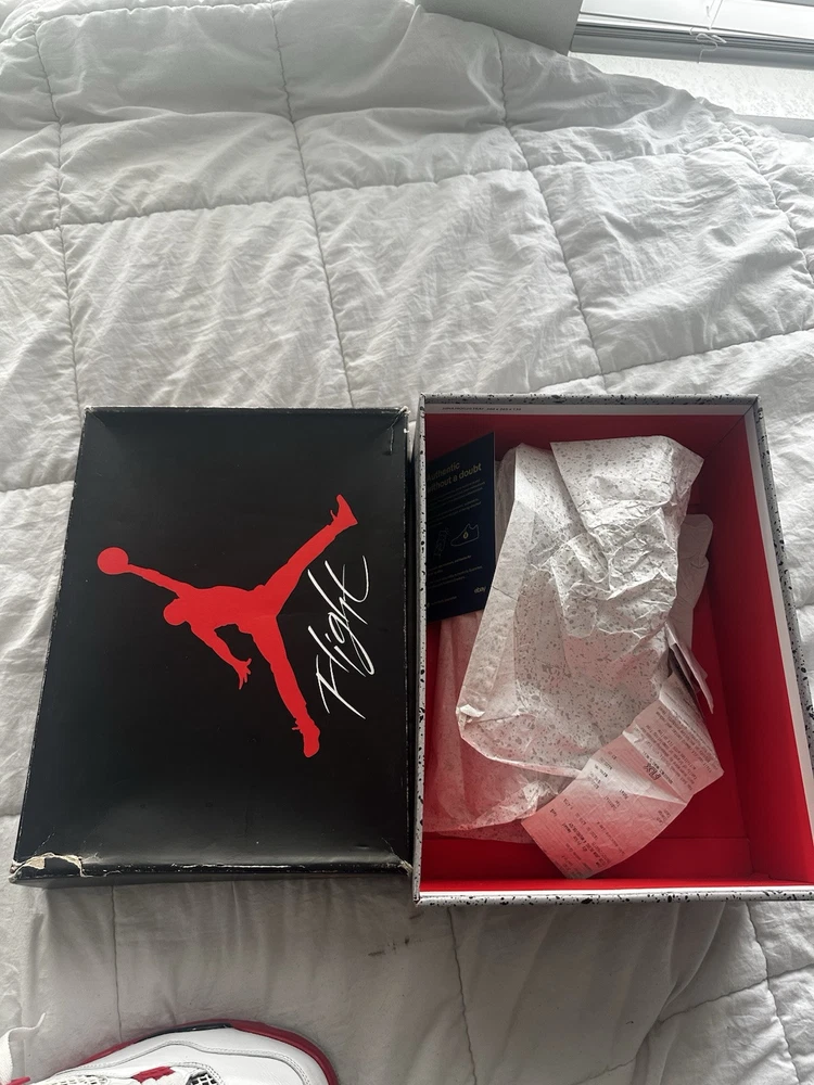 US Shoe Size:11.5Shoe Shaft Style:Low TopNickname:Fire RedManufacturer Color:White, Black, Fire RedBrand:JordanColor:WhiteDepartment:MenStyle:SneakerModel:Air Jordan 4Style Code:308497160Type:AthleticProduct Line:Air Jordan