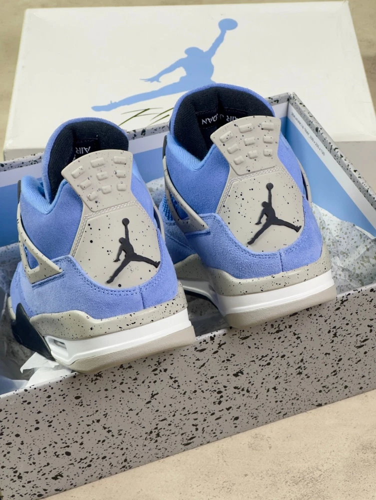 These Jordan 4s in University Blue are a must-have for sneaker lovers! The quality is top-notch, with great cushioning and a stylish retro look. The color pops, and they fit true to size. No box, but the shoes arrived in perfect condition. Super comfortable for all-day wear—definitely worth it!