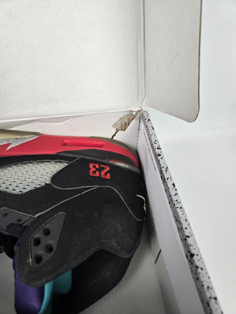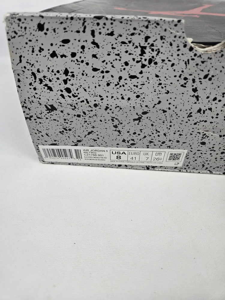 Jordan 5 Retro by Nike, pre-owned Men's 8. These are pre-owned so please see all pictures for imperfections and flaws. They do come with a box, but it is heavily damaged. Again in the pictures. If you should have any further questions, please do not hesitate to ask. Thanks 2B