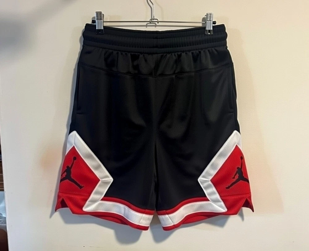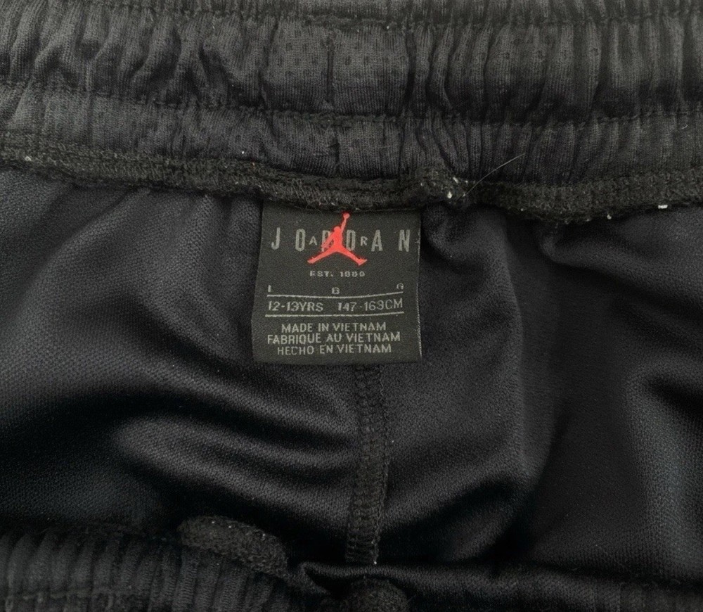 Jordan youth Dri-FIT basketball shorts in black with red and white color block panels. Lightweight, breathable fabric designed to keep kids cool and comfortable during sports or everyday wear. Elastic waistband with red drawstring for an adjustable fit. Jumpman logos on both legs add authentic Jordan style. Details: • Brand: Jordan • Size: Youth Large (12–13 years) • Color: Black / Red / White • Style: Basketball shorts • Fabric: Dri-FIT moisture-wicking material • Waist: Elastic with drawstring • Logos: Jumpman on both legs • Made in Vietnam Condition: Excellent pre-owned condition. No stains, holes, fading, or damage. Clean and ready to wear. Please review photos for exact condition and sizing. Message me with any questions before purchasing.
