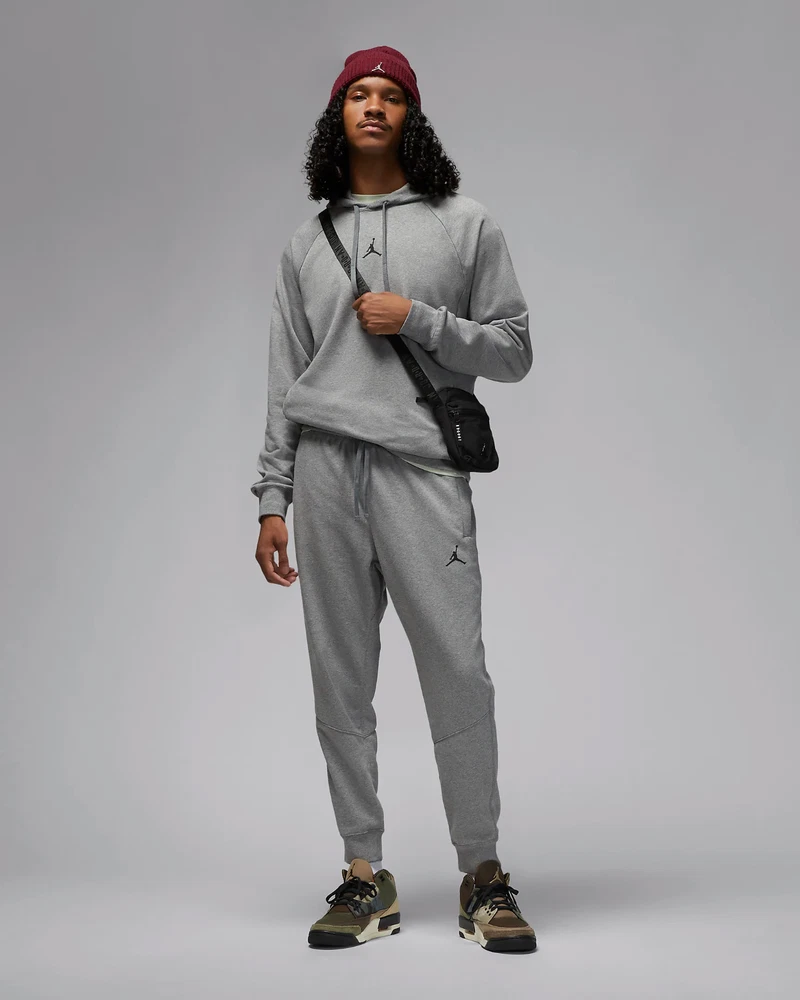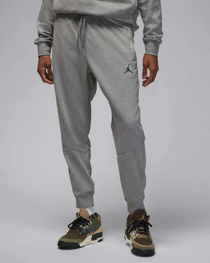 NWT * Nike Jordan Dri-FIT Sport Men's Fleece Pants SWEATS WITH SWAGGER. Whether you're hanging or hooping, stay fly in these relaxed fleece trousers. Made from soft French terry fabric and sweat-wicking tech, they'll keep you fresh and ready for every opportunity that arises. Benefits Stitch lines are inspired by the original Wings jacket for a heritage touch. Ribbed cuffs stretch with you for ease of movement. Zip pockets let you safely store your small things. 29" Inseam - 42" Outseam Elastic waistband with drawcord Pockets Printed Jumpman Body: 62% cotton/38% polyester. Pocket bags: 100% cotton. Rib: 97% cotton/3% elastane Machine wash Color: Carbon Heather/Black Style: DQ7332-091 New with Tag Thanks for looking! Check out my other items for more great deals!