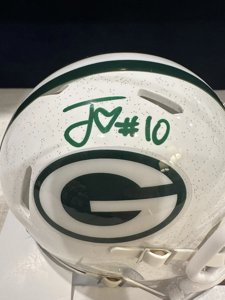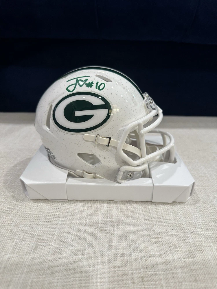 Jordan Love SIGNED Green Bay Packers 2024 Alt White Mini Helmet Green Ink Becket