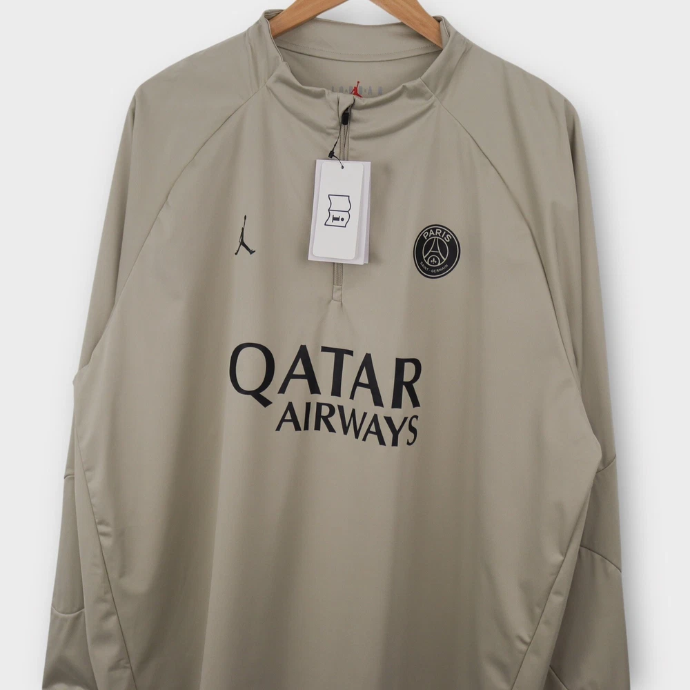 Elevate your winter game with this Nike Paris Saint-Germain Strike Winter Warrior Men's Jordan Storm-FIT Jacket XXL. Showcasing your support for Paris Saint-Germain, this officially licensed jacket is perfect for soccer fans. Made in Vietnam, this gray jacket features the iconic Jordan brand and is designed to withstand the winter weather. Stay warm and comfortable with its size 2XL for men, while representing your favorite soccer team. Perfect for sports enthusiasts, this jacket is a great addition to your fan apparel and souvenirs. Tag Size: Men’s XXL Best Fit: * Men: XXL Approximate Flat Measurements: * Chest: 25” * Length: 32” * Material: Polyester Condition: New With Tags All items are second hand, many being vintage and may have small imperfections. Anything major is noted.