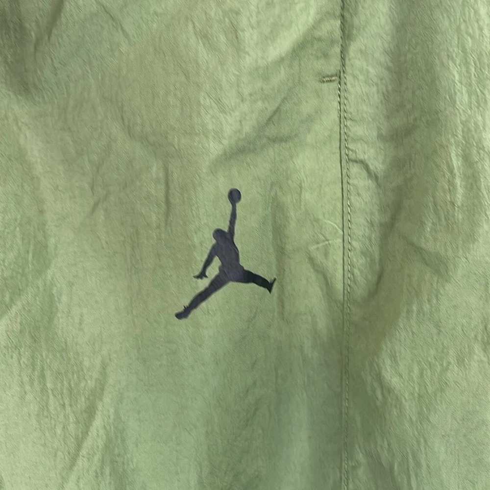 Jordan Windbreaker Mens M Warm Up Jumpman Activewear Zip Ankle Jogger Green Pant. FEATURES: Flaws: None visible, pre-loved Good Condition Style Profile: Lined, Drawstring elastic waist, relaxed fit, casual, comfortable Approximate measurement Waist: 30" Rise: 11" Inseam: 28" CT-2-0045612152024