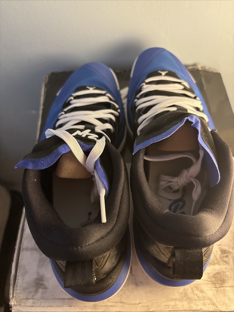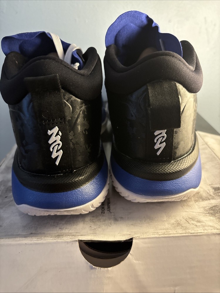 The Air Jordan 1 Zion is a stylish and performance-ready basketball shoe. This pair has been worn twice and remains in good condition, with minimal signs of wear. While the original box is damaged, the shoes themselves are well-maintained and offer excellent comfort, durability, and style, making them a solid choice for basketball or casual wear.
