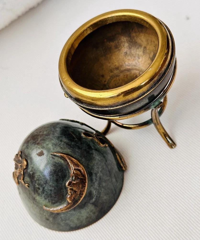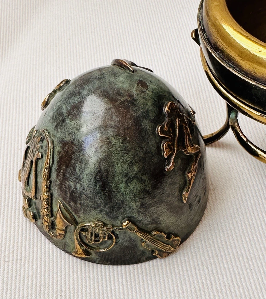 $ 11.09Vintage Domed Lid Trinket Box with Ornate Bone Brass & Wood Design from India