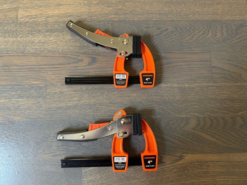 Jorgensen 4-Inch Bar Clamp Set – 2 Pack Used but in good working condition. These quick-release gear clamping force and are great for woodworking or general shop use. Shows normal signs of use. What’s shown in the photos is exactly what you will receive.