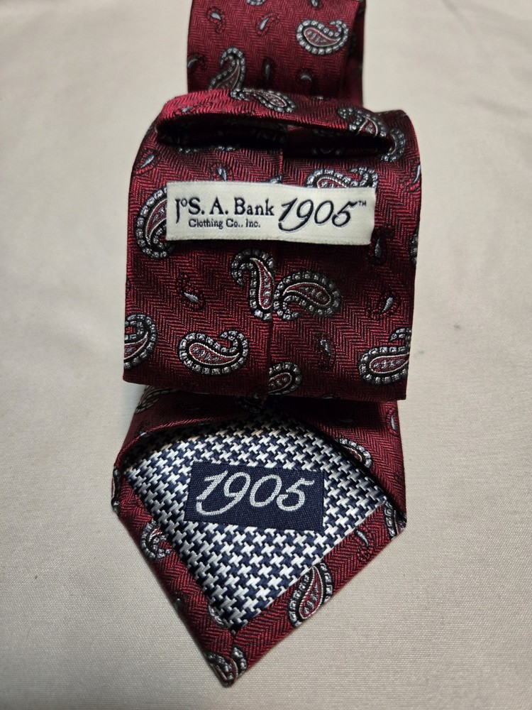 Handmade:NoItem Length:Long (More Than 60")Type:TieMaterial:100% SilkDepartment:MenItem Width:ClassicCountry/Region of Manufacture:ChinaStyle:PointedBrand:Jos. A. BankColor:RedPattern:Paisley
