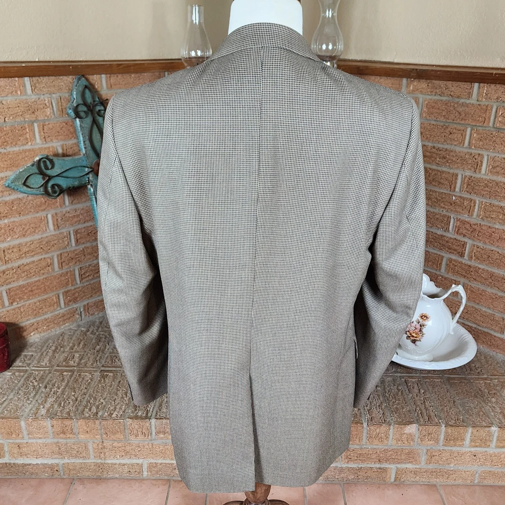 Jos. A. Bank Tan Houndstooth 100% Wool Gordon Blazer Size 43LG