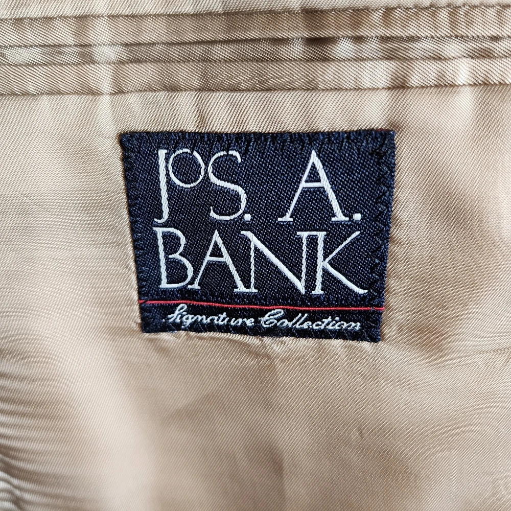 Jos. A. Bank Tan Houndstooth 100% Wool Gordon Blazer Size 43LG Brand : Jos. A. Bank Tag Size : 43LG Style : Gordon Blazer Houndstooth Signature Collection Material : 100% wool Condition details : No rips, stains, or holes Color : Tan and Black Launder: Dry clean Country of Manufacture: Mexico MEASUREMENTS are APPROXIMATE TAKEN IN INCHES with GARMENT LYING FLAT Please see photo