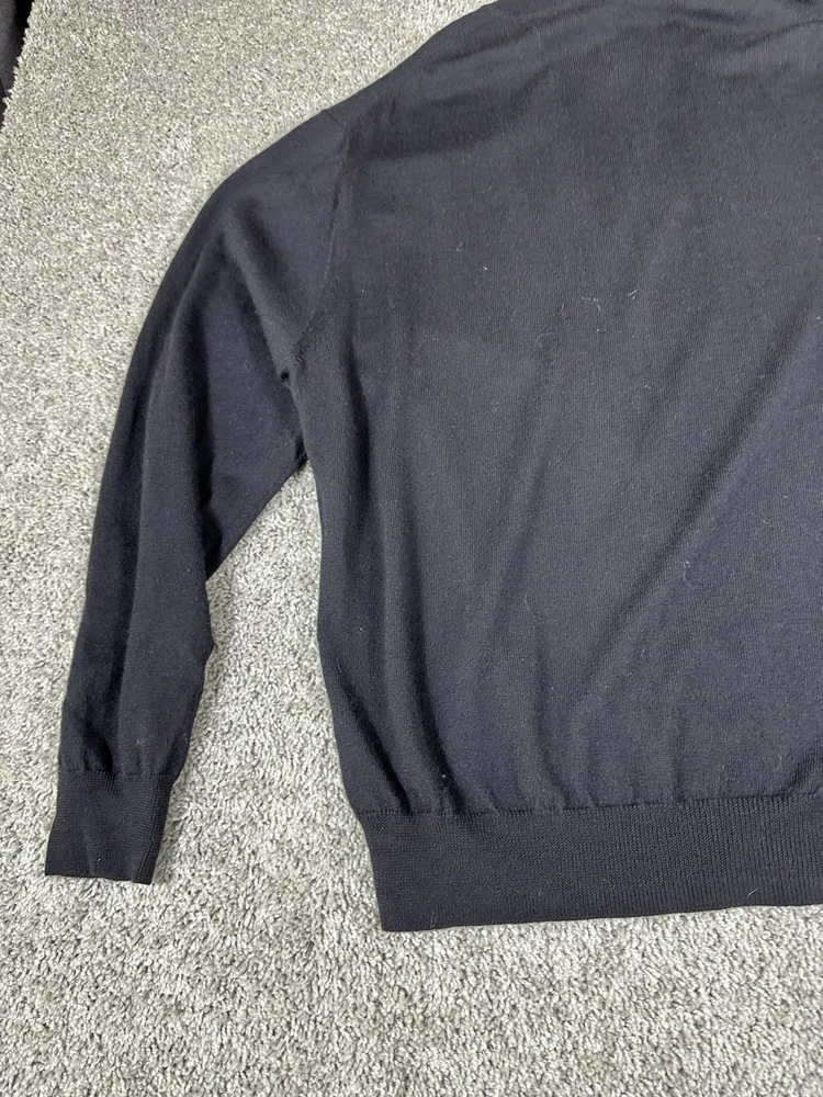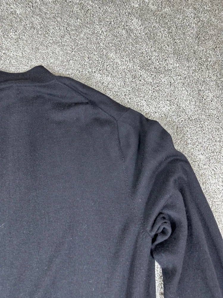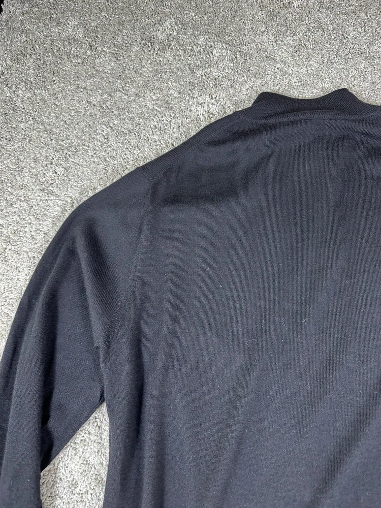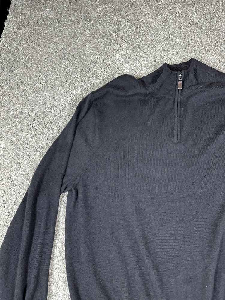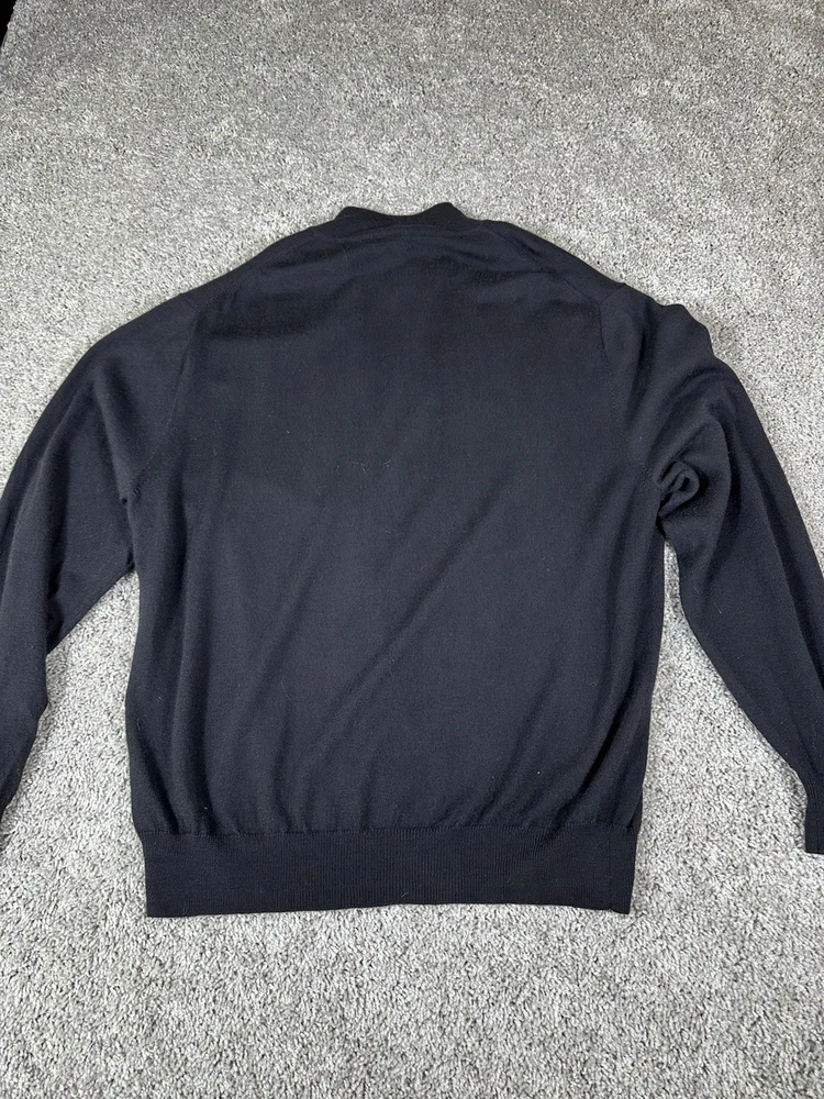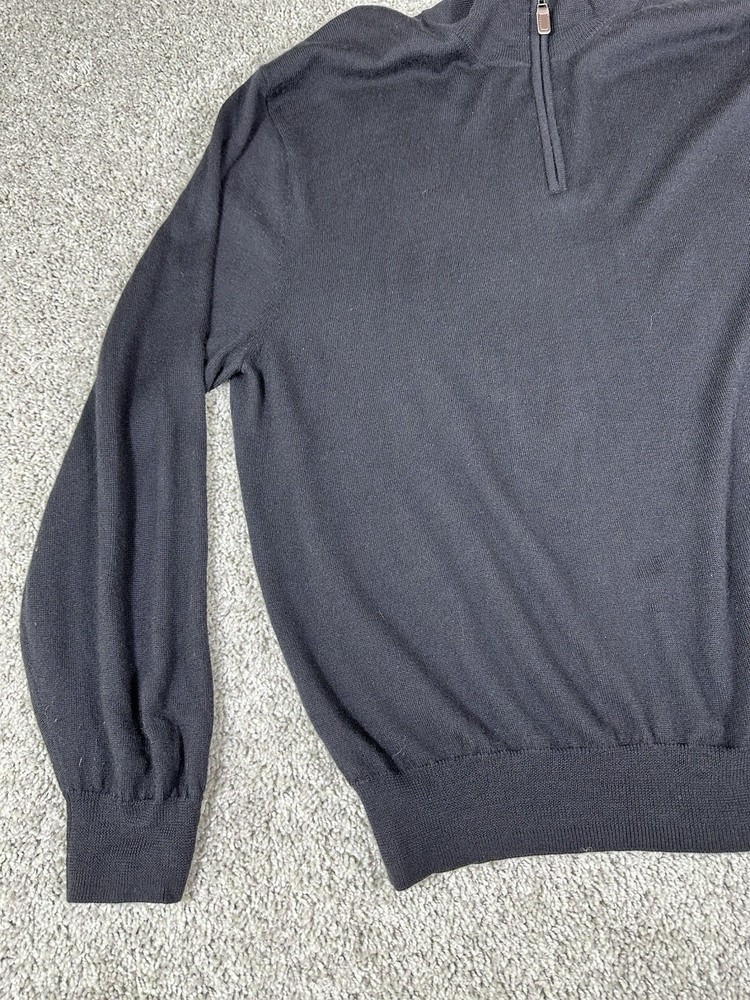 The Jos A Bank Traveler Merino Wool ¼ Zip Sweater in Men's size XL is a versatile and stylish piece perfect for travel, casual outings, or business meetings. Made of high-quality wool and featuring a mock neck neckline, this sweater offers warmth and sophistication. The pullover style, long sleeves, and solid black color make it a timeless wardrobe staple suitable for the winter, fall, and spring seasons. Easy to care for with its machine washable knit fabric, this sweater is a practical and fashionable choice for any man looking for a classic yet modern wardrobe essential. 2968