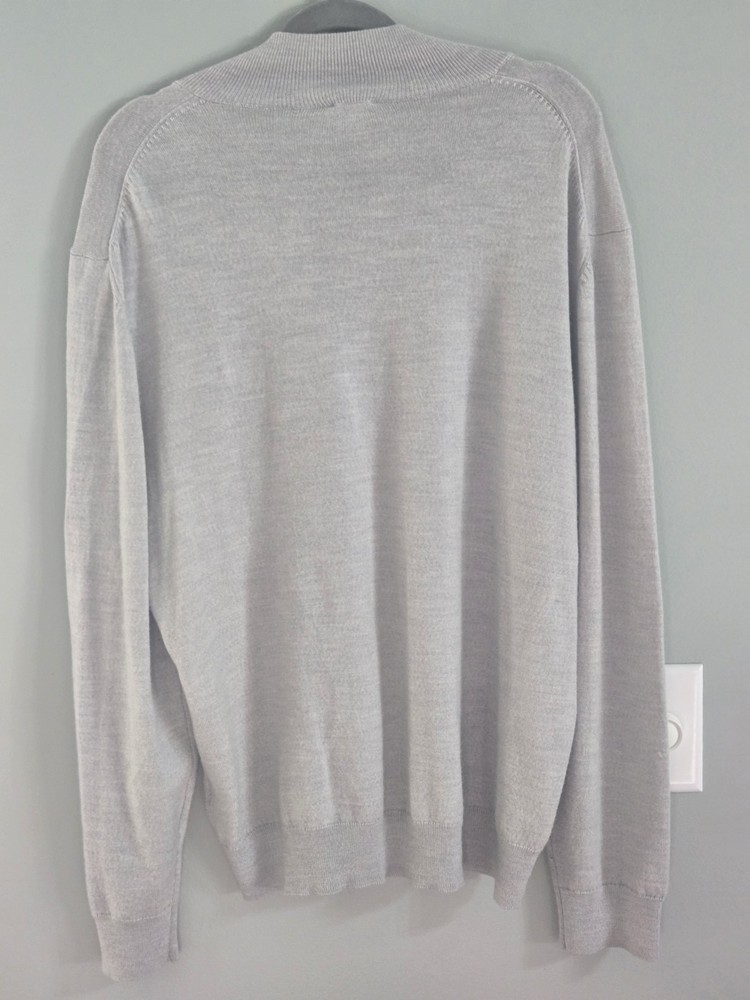 The Jos A. Bank Traveler Sweater is a stylish and versatile pullover sweater for men, ideal for travel, casual outings, or business settings. Made from 100% Merino Wool in a solid gray color, this tight-knit sweater features a V-neckline and long sleeves, perfect for the winter, fall, and spring seasons. The 1/4 zip design adds a touch of functionality, while the classic and designer themes make it a timeless piece in any wardrobe. Easy to care for with machine washable instructions, this sweater is a must-have for the fashion-conscious man.