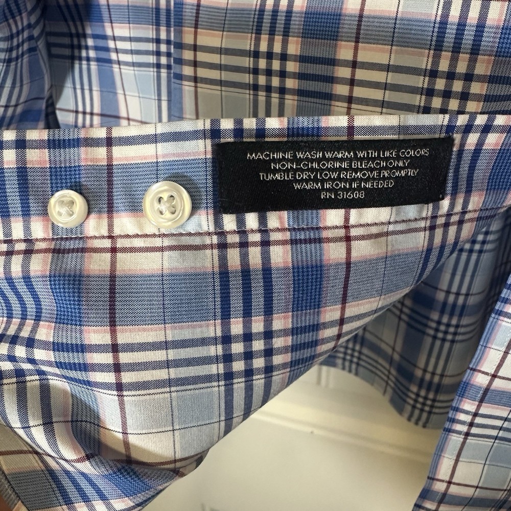 Shirt is in excellent pre-owned condition. No flaws. The Jos. A Bank Traveler's Collection Plaid Button Down Shirt in size L offers a tailored fit for men who appreciate a classic dress shirt. Made from 100% cotton, this shirt features a stylish plaid pattern in a variety of colors, making it suitable for various occasions. With long sleeves and a button closure, this shirt from Jos. A Bank is sure to add a touch of sophistication to any outfit.
