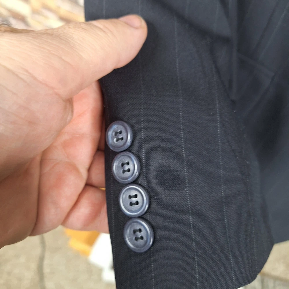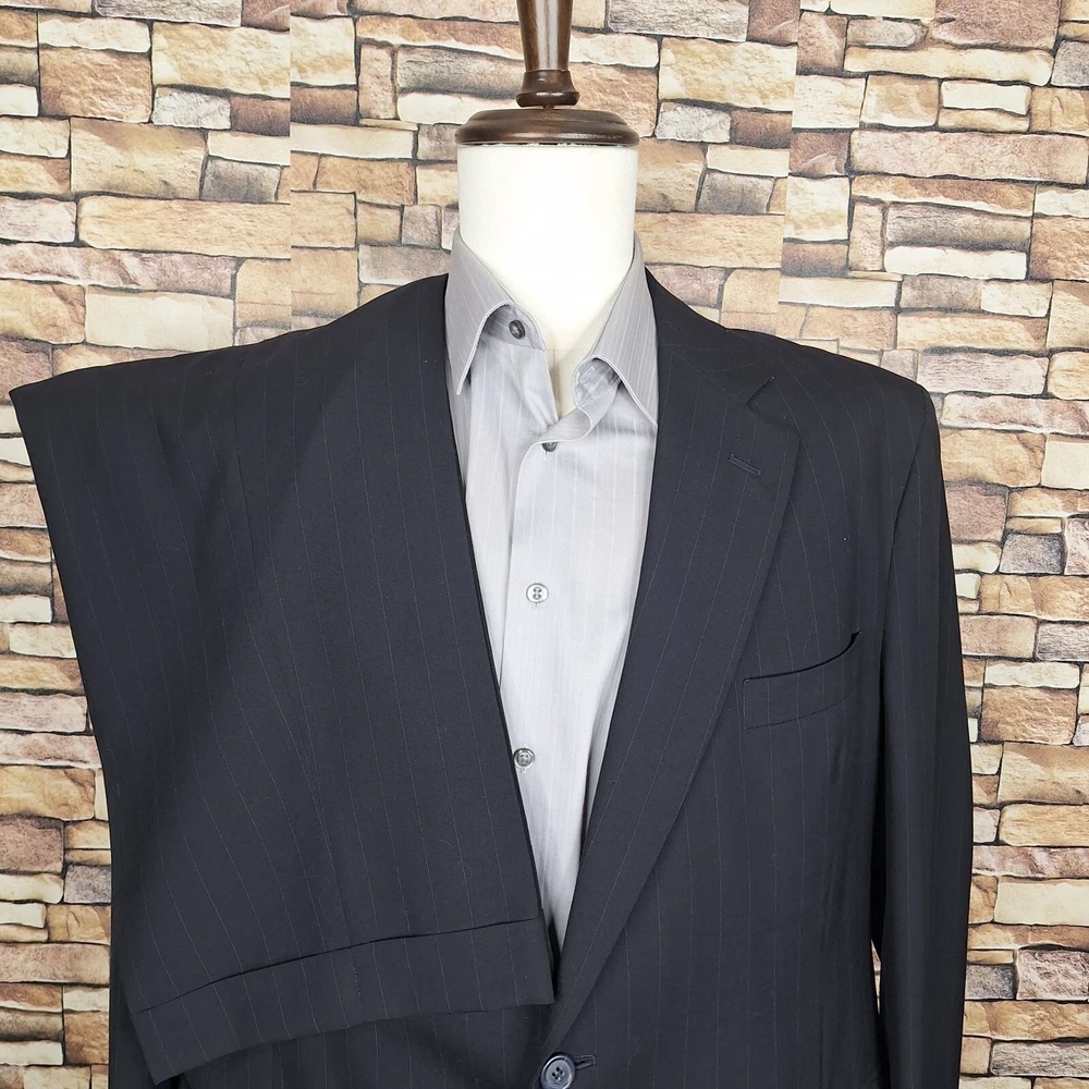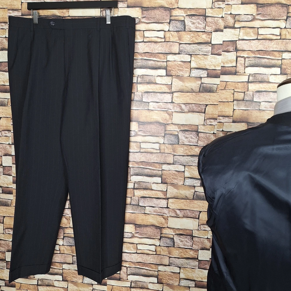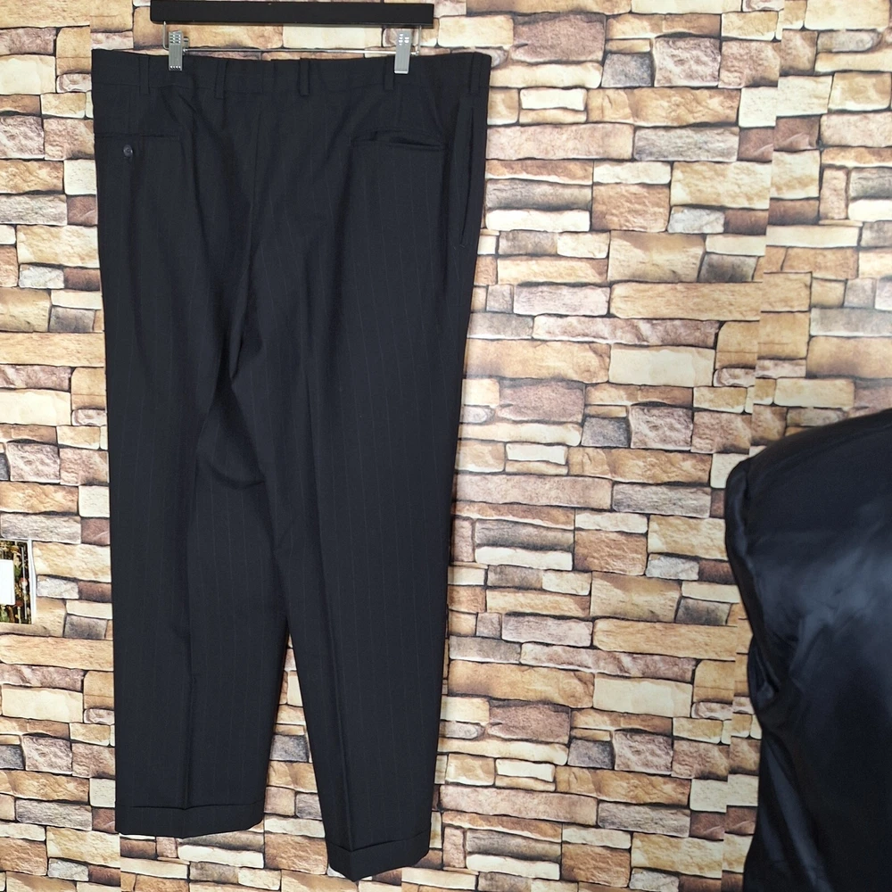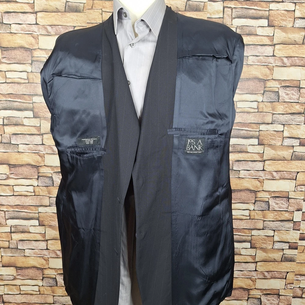 Joseph A Bank 2 Piece Suit Mens 48R 40X29 Black Stripe Wool Single Vented Quality used condition. Please check out the measurements before buying to ensure a perfect fit.Does have a fair Amount of Shoulder padding Shirt Size on Label 48R Shoulder- Hem 31.00'' Shoulder- Shoulder 21.00'' Shoulder- Wrist 24.50'' Armpit- Armpit 25.00'' Top button 24.00'' Everything ships within a day. Feel free to message me with any questions. Thank you very much. 12/9/24 Pants Pleated Cuffed Lined Quality used condition. Please check out the measurements before buying to ensure a perfect fit. Pants Size on Label Seam (Outer) 40.00'' Waist 38.00'' Waist- Crotch 12.50'' Inseam 29.00'' Extra inseam fabric 1.40'' Everything ships within a day. Feel free to message me with any questions. Thank you very much. 12/9/24