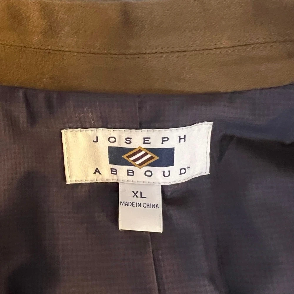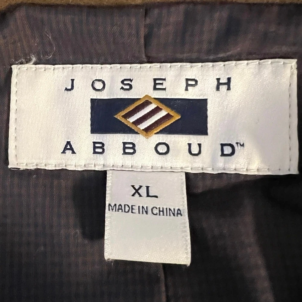Type: Blazer Brand: Joseph Abboud Material: Cotton Color: Brown Fit: Regular Occasion: Casual, Travel, Wedding, Business Pattern: Solid Garment Care: Dry Clean Only Vintage: No Jacket/Coat Length: Regular Handmade: No Seller Notes: “Excellent preowned condition” Style: 2 Piece Jacket Front Button Style: Two-Button Lining Material: Polyester Department: Men Size: XL Size Type: Regular Personalize: No Number of Pieces: 2 Piece Jacket Vent Style: Double-Vented Season: Fall, Winter Jacket Cut: Single-Breasted
