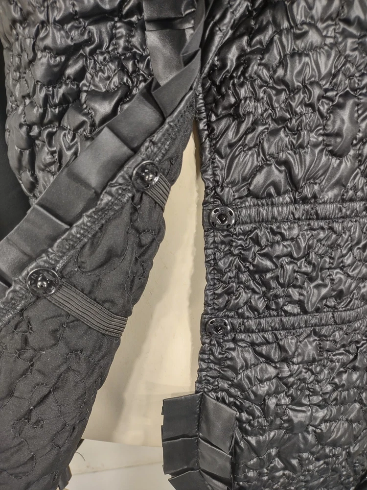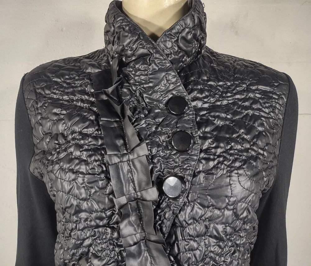 ladies button front jacket blouse Joseph Ribkoff brand black; textured size 10 (Please refer to measurements below!) fabric content unknown Excellent pre-owned condition! No flaws to speak of. Measurements lying flat: Bust (pit to pit): 19.5 inches. Length (from nape of neck to bottom hem): 25 inches. Policies and Disclosures: RETURNS: Returns are accepted within 30 days of purchase. Buyer is responsible for return shipping. All items from this store come with an identification tag; Item(s) must be returned in original condition with the I.D. tag intact for a refund. SHIPPING: I do combine shipping when multiple items are purchased. In order to provide you with the least expensive price, you will need to send me a message requesting an invoice with combined shipping. CLOTHING: My goal is to sell only the finest quality new and gently used clothing items in my stores, and I strive for 100% satisfaction with every order. While my home is smoke-free, other pre-owned items from different sources cannot be guaranteed as smoke-free or pet-free. It is assumed that you as the buyer will be cleaning the garment once it arrives to you, so unless there is an obvious stain or odor, the clothing has not been laundered. I felt it was best left up to the buyer so no issues would surface regarding detergent allergies, shrinking, etc. Please note that any must or smoke odors can almost always be completely removed by adding 1 cup of distilled white vinegar to your normal wash cycle. I provide measurements on all my clothing items so that you, as the buyer, can make an informed decision about your purchase. Please use that information to compare it with a garment that fits you well to determine if the item will work for you. Seller will not assume responsibility for return postage on items that do not fit. COMMENTS: Please note that every item I sell is described to the best of my knowledge and ability, however, I am a human being, so occasionally I do make mistakes. Colors may vary slightly between screens and monitors. Sizing can vary from brand to brand. If you have any questions about the item(s), free to ask and I will do my best to get back with you in a timely manner. If you have any issues with your purchase, please do not hesitate to contact me prior to leaving negative feedback so we can try to resolve the issue. I am flexible and easy to work with. If you see something you are interested in, feel free to make a reasonable offer! (On a side note: Lowball offers are insulting and will be declined.) Take a moment to browse my other items for sale. I offer a large variety of items, with new items daily, so there’s something for everyone! Thanks so much for taking the time to look and have a wonderful day!
