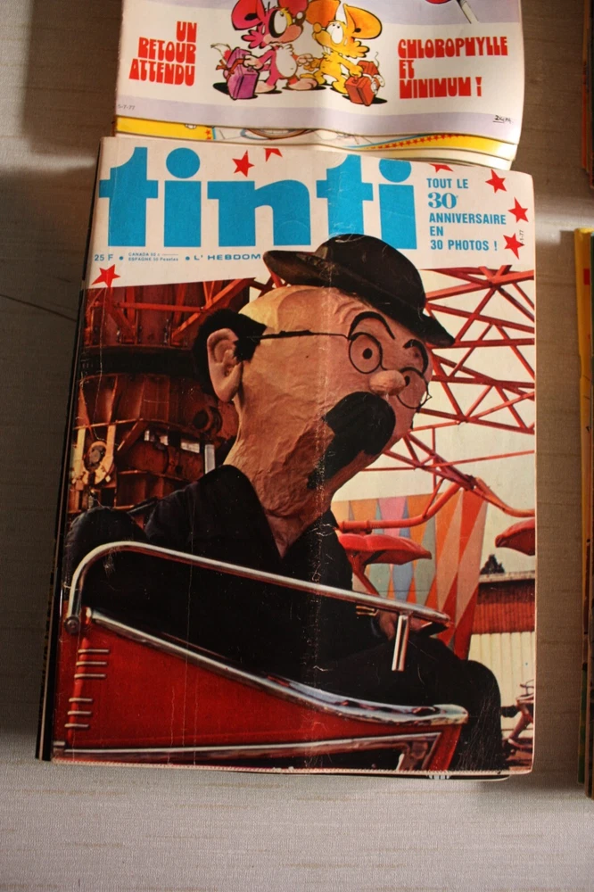 Journal Hebdomadaire Super-Jeunes TINTIN 1977 no. 1-48 +no. 52. No.49 - 51 manquent Journaux en bon état général. Il existe une pliure au centre de certains journaux. Sur certains journeaux, la pliure est plus prononcée La pliure est le résultat de la manière que les journaux étaient pliés pour la poste Evident en photos. Aucune page manquante. Envoi très soigné