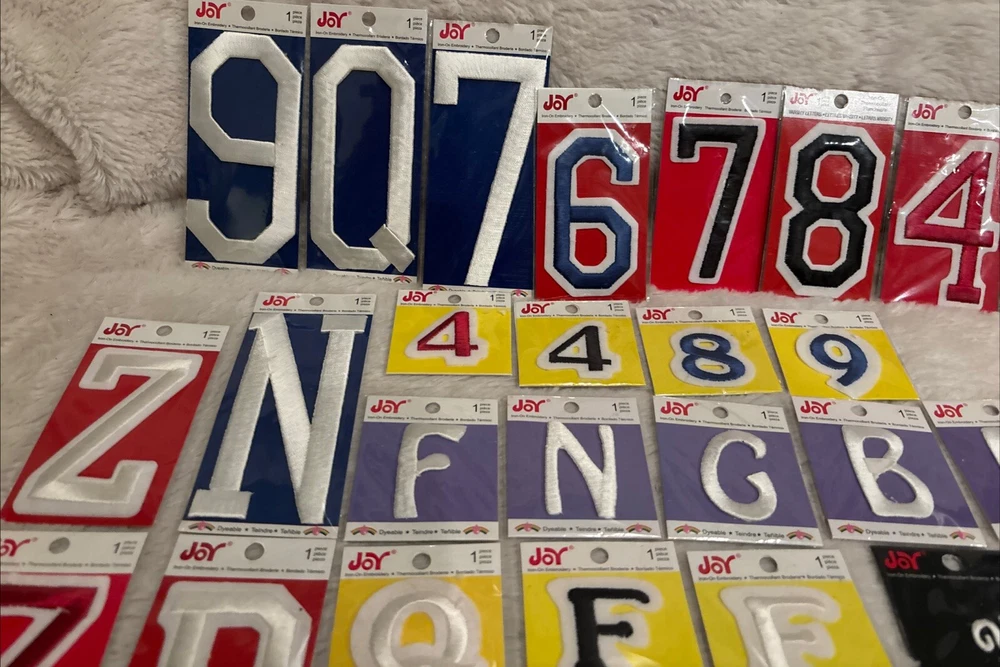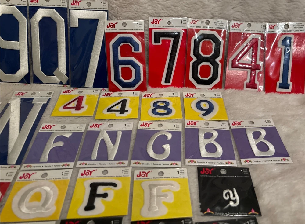 Enhance your sewing projects with the Joy Brand Embroidery Sew Iron On Appliqué set, featuring a versatile mix of 22 letters and 12 numbers. Perfect for personalizing accessories, bags, purses, jeans, pants, coats, and jackets, this variety lot is ideal for crafters and sewists looking to add a touch of custom flair to their creations. Each patch in this mixed lot is carefully embroidered, ensuring a high-quality and durable addition to your fabric. Proudly made in China, these appliqués are easy to apply with their iron-on design, making them a practical choice for both beginners and seasoned enthusiasts. Large to small.. cursive to numbers mixed lot