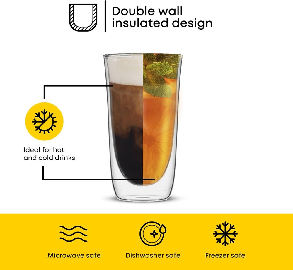 Absolutely love these JoyJolt glasses! The double-wall design keeps drinks cold without condensation, and they look sleek on the table. Perfect for cocktails, iced coffee, or even smoothies—super versatile. Plus, they’re sturdy and easy to clean. Great value for a set of two!