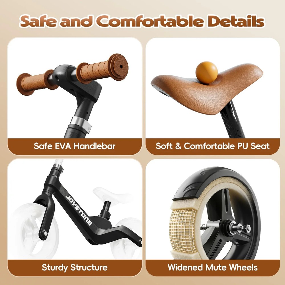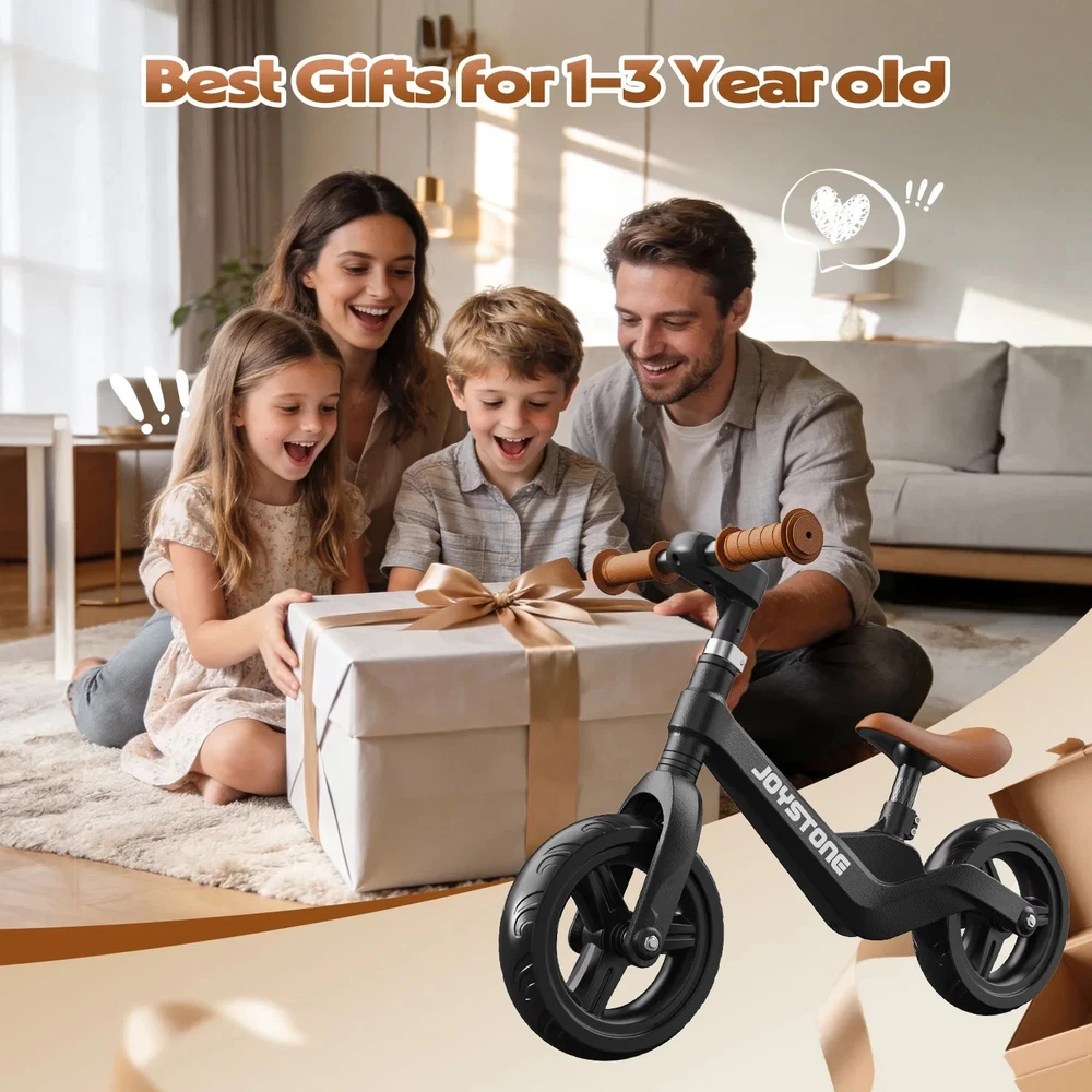 π² JoyStone Toddler Balance Bike (Ages 1-3) β¨ Why This Balance Bike This balance bike is designed to help toddlers naturally learn balance and coordination before moving to a pedal bike. No pedals, no training wheels - just simple, intuitive riding that builds confidence from day one. π§ Early Skill Development By pushing, steering, and gliding, children improve: β’ balance and coordination β’ motor skills β’ spatial awareness β’ confidence and independence This makes the transition to a pedal bike smoother and faster later on. πΉ Key Features β’ βοΈ Ultra-Lightweight - Only 4.84 lb (2.2 kg), easy for toddlers to push, lift, and control β’ π§ Adjustable Seat & Handlebar - Designed to grow with your child from ages 1 to 3 β’ π 8" All-Terrain Tires - Suitable for sidewalks, parks, indoor floors, and playground paths β’ π 360Β° Rotating Handlebars - Allows full steering freedom and better balance training β’ π§± Low Step-Through Metal Frame - Easy on and off, stable, lightweight, and durable πΆ Designed for Toddlers β’ Safe geometry for early riders β’ Comfortable grips sized for small hands β’ Stable design to reduce tipping β’ Unisex style for boys and girls π Perfect First Bike & Gift Idea Ideal for birthdays, holidays, or as a first riding toy. Combines fun, learning, and physical development in one simple design. π¦ Whatβs Included β’ Balance bike β’ Adjustable seat and handlebar β’ Assembly tools β’ User instructions π Fast shipping βοΈ Safe, durable, and beginner-friendly βοΈ Helps kids ride with confidence early