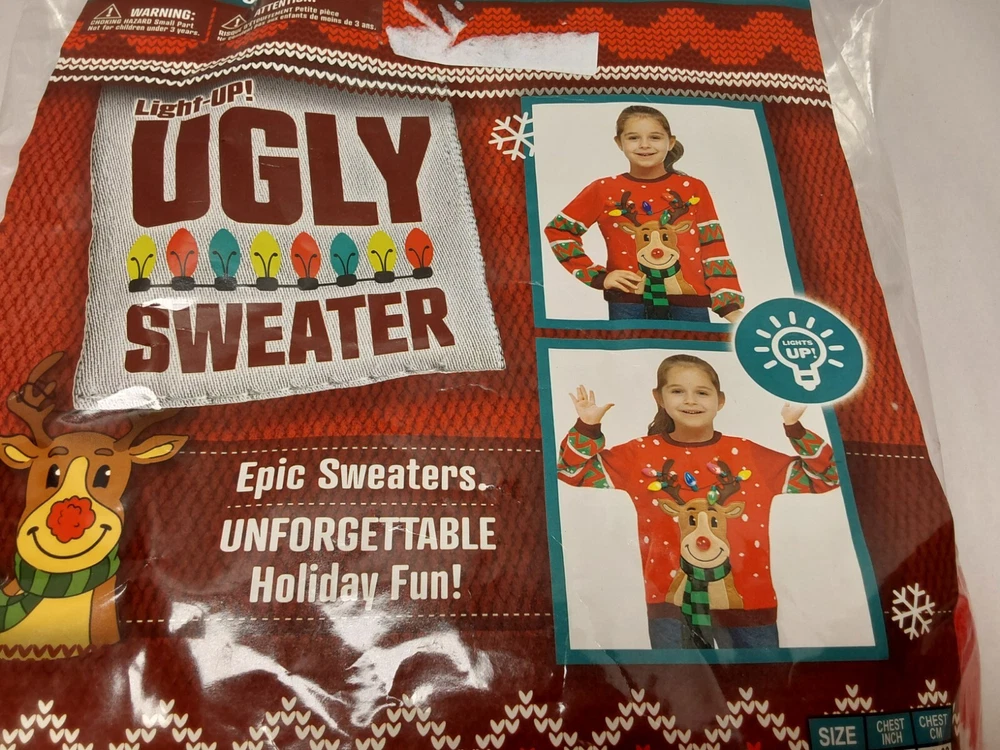 Joyin Light-Up Reindeer Ugly Christmas Sweater – Size S Bring festive cheer to your holiday gatherings with this Joyin Light-Up Ugly Christmas Sweater! Featuring a playful reindeer with colorful Christmas lights on its antlers, this sweater is sure to be a hit at any holiday party. Made from 100% acrylic, it’s comfortable and warm for winter festivities. Size Small with fun, colorful details on the sleeves and front. Ideal for ugly sweater parties, family photos, or as a quirky Christmas gift!.....