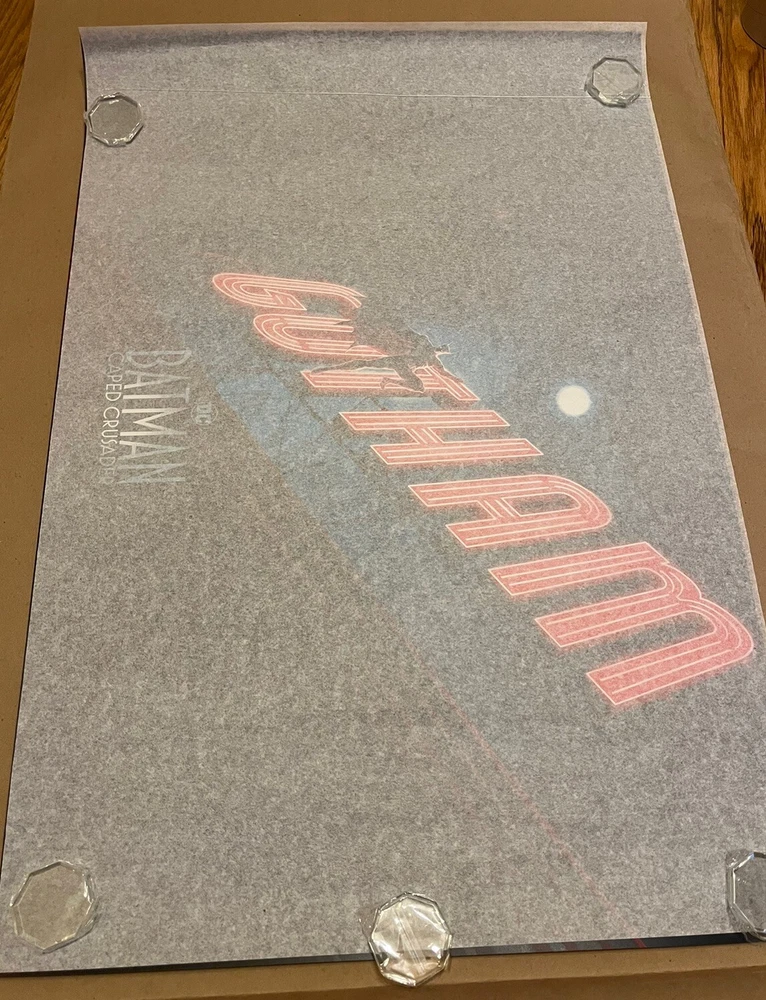 IN HAND - ORIGINAL PACKAGING Batman: Caped Crusader Limited Edition Foil Print by Juan Ramos Introducing a captivating piece of DC Comics art! This limited edition foil print by Juan Ramos showcases the iconic Batman in all his glory, soaring above the Gotham skyline. Key Features: Limited Edition: Only 85 copies available High-Quality Print: Stunning detail and vibrant colors Unframed: Customize to fit your decor Brand New: Perfect condition Description: Immerse yourself in the world of the Dark Knight with this stunning print. Batman stands tall against the backdrop of Gotham City, illuminated by the moon and the vibrant neon lights. The intricate details and rich colors bring the character to life, making it a must-have for any Batman fan or art collector. Shipping: Delivery: WILL SHIP WITHIN 1 DAY . Secure Packaging: Your print will be shipped carefully in its ORIGINAL PACKAGING to ensure it arrives in perfect condition. Keywords: Batman, DC Comics, limited edition, foil print, Juan Ramos, Gotham City, superhero, artwork, collectible, art, poster.