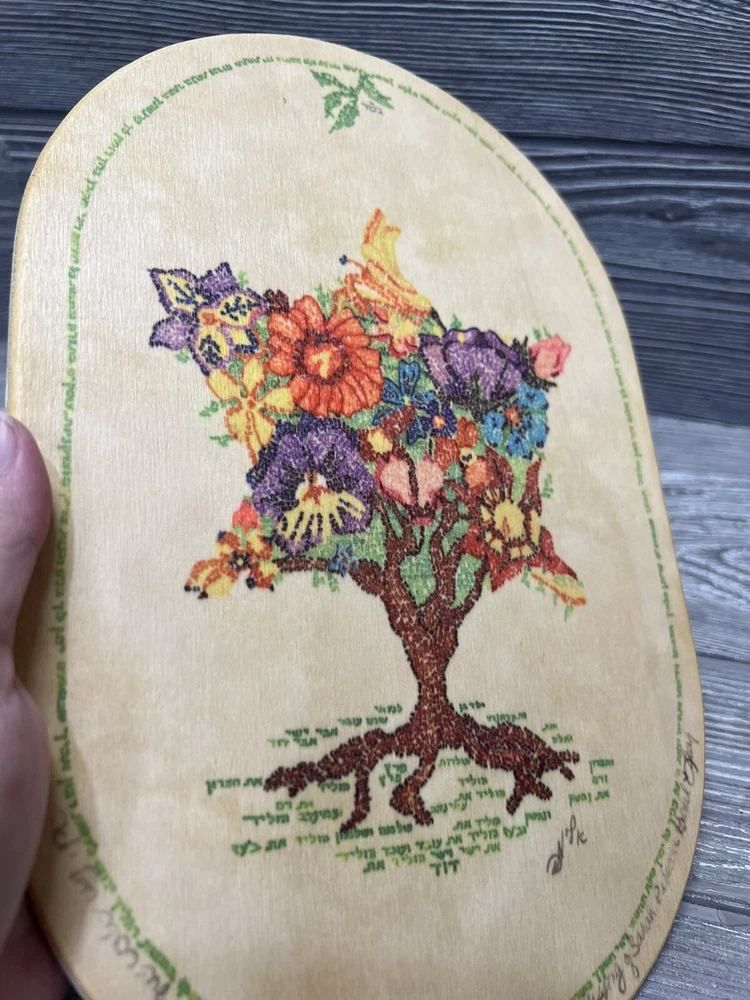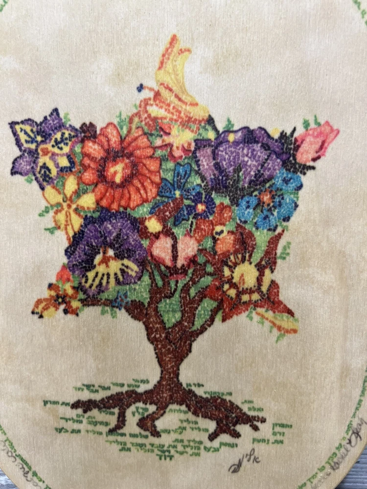 Judaica Hebrew Tree Of Life Plaque Wall Decor Micro Calligraphy Signed Rare Art 11.25” x 7” See Pics Smoke Free Environment