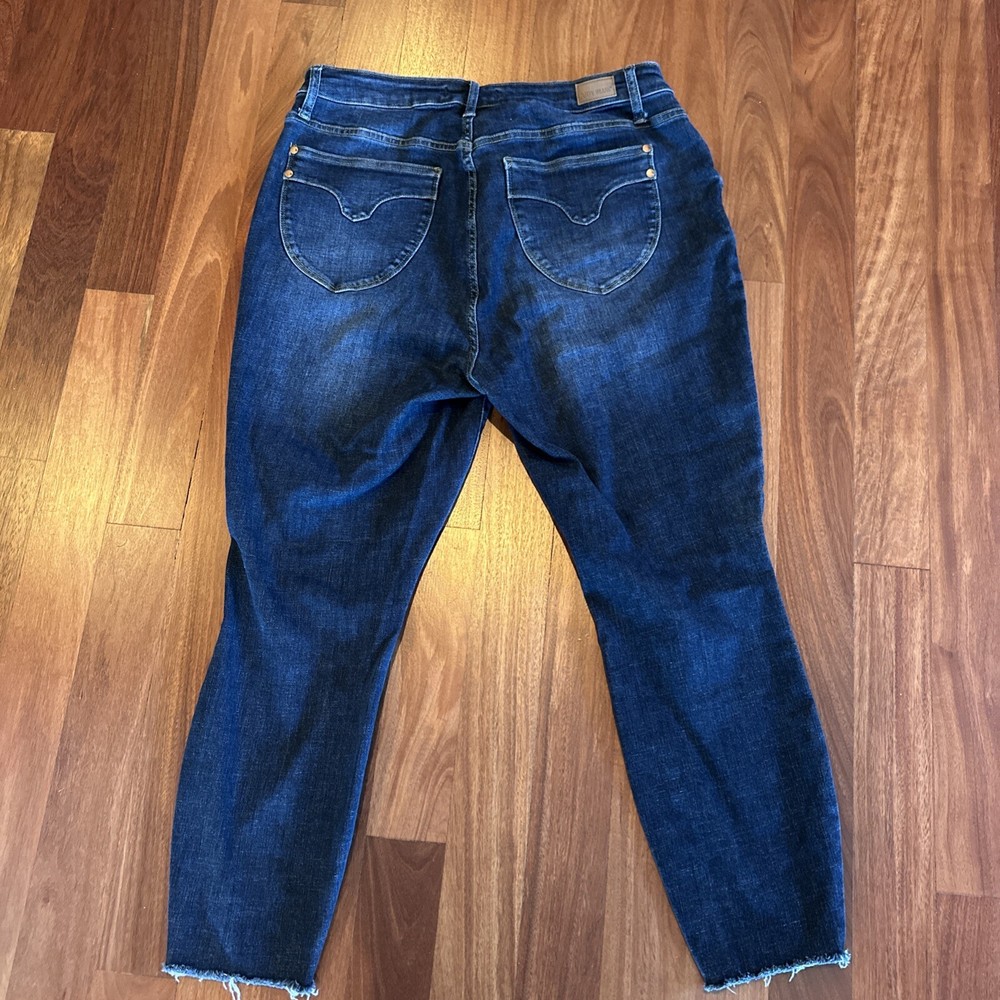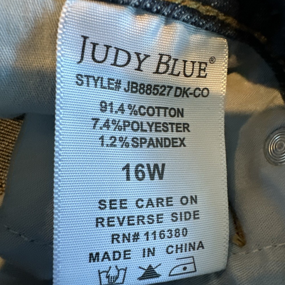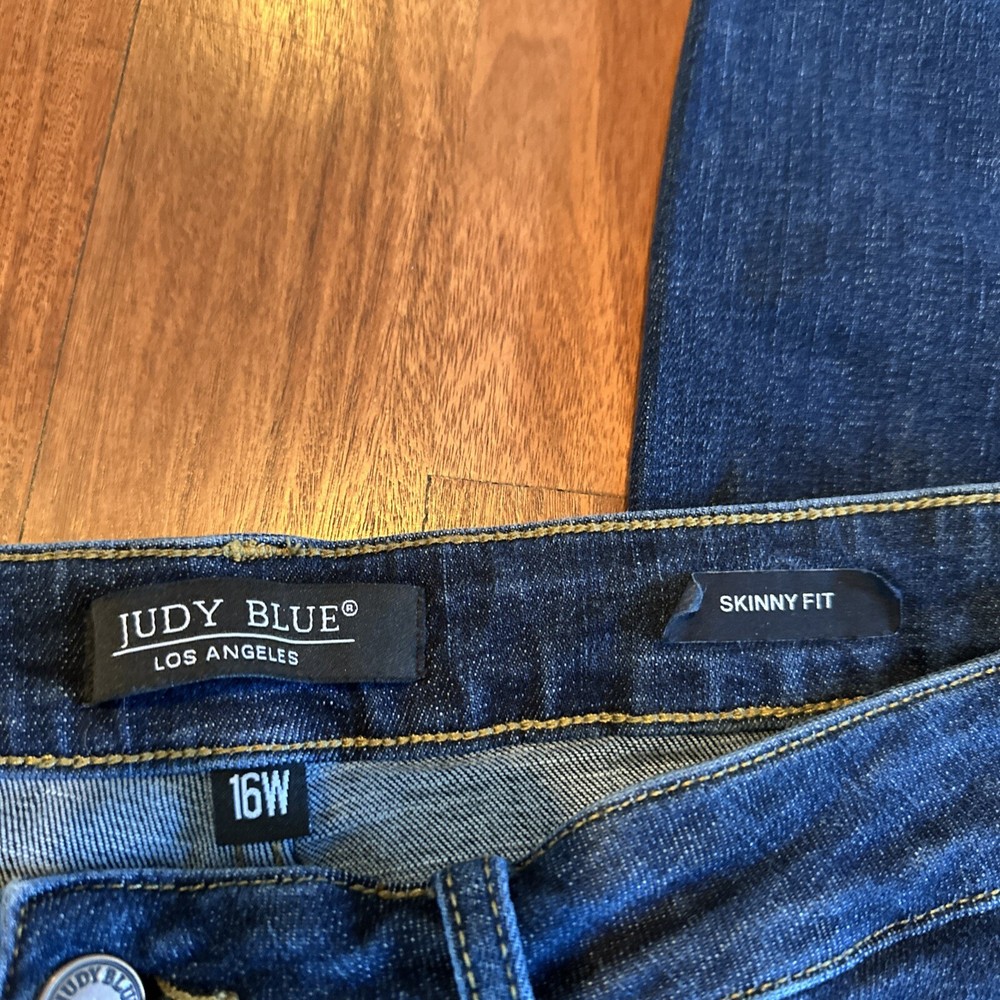 These Judy Blue Jeans are designed for women in a size 16W with a dark wash and made from stretch denim fabric. The skinny fit style features a classic design with fray hem details, offering a slim and comfortable fit for the wearer. With a 5-pocket design, belt loops, and a mid-rise (8.5-10.5 inches), these jeans are perfect for the summer and spring seasons, providing a timeless and versatile addition to any wardrobe.