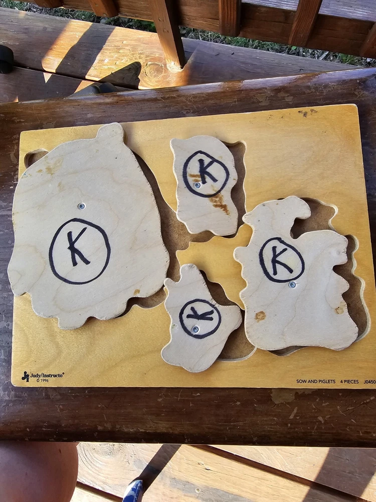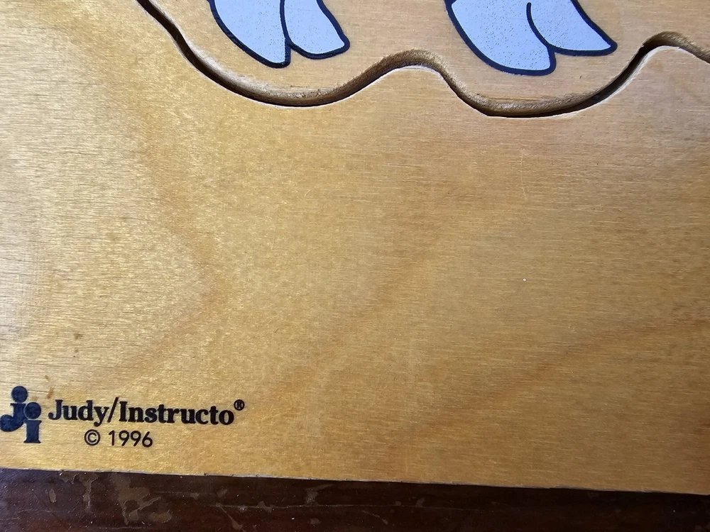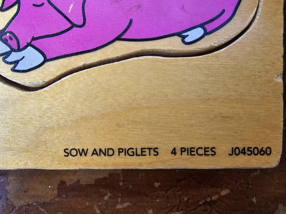 This vintage wooden puzzle set features Judy Instructo, a beloved children's character, and her farm animals. The puzzle pieces are made of high-quality wood and feature charming illustrations of Sow and Piglets. Perfect for educational play, this puzzle set is a great addition to any child's toy collection. The theme of the puzzle set is animals, and it is made of durable wood material.