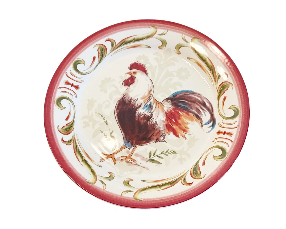 Add a touch of country charm to your dining table with this set of three Pier 1 Ironstone Rooster Chicken Dessert Salad Plates. These round plates measure 8.75 inches in diameter and feature a glossy finish with a colorful rooster pattern. The plates are not only decorative but also functional, making them perfect for all occasions. Crafted in China using ironstone production technique, these plates are not only microwave and dishwasher safe but also original and licensed reproduction. The plates are part of the Country Lane product line and have a printed backstamp. Each plate is perfect for serving desserts or salads. Smoke free home Please visit my store at https://www.ebay.com/str/theuniqueredhead . Thank you for your consideration. Please message me if you have any questions. I do combined shipping on my items in the store.