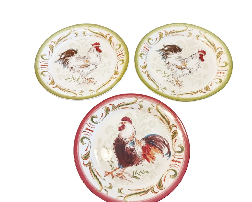 "Juego de 3 platos de ensalada de postre de pollo Ironstone Pier 1 Country 8,75"""