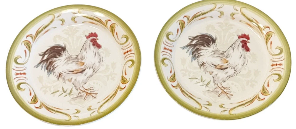 Original/Licensed Reproduction: Original Type: Salad Plate Era: 21st Century (2000-now) Occasion: All Occasions Handmade: No Origin: America Production Technique: Ironstone Product Line: Country Lane Production Style: Art Pottery Item Height: NA Year Manufactured: 2013 Shape: Round Set Includes: Two Plates Item Width: NA Pattern: Rooster Finish: Glossy Item Length: NA Plate Diameter: 8.75 in Color: Multicolor Features: Decorative, Dishwasher Safe, Microwave Safe Country/Region of Manufacture: China Brand: Pier 1 Time Period Manufactured: 2010-2019 Number of Items in Set: Three Piece Item Weight: 2.5 lbs Vintage: No Department: Adult Estado del artículo: Usado Care Instructions: Machine Washable up to 140°F Antique: No MPN: NA Theme: Birds Style: Country Material: Ironstone Manufacturer Warranty: NA Notas del vendedor: “Excellent pre-owned condition. No chips, cracks or repairs. See photos” Backstamp: Printed