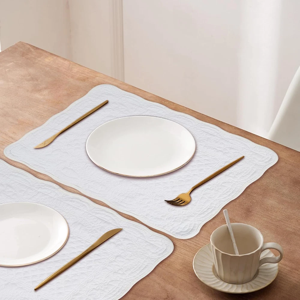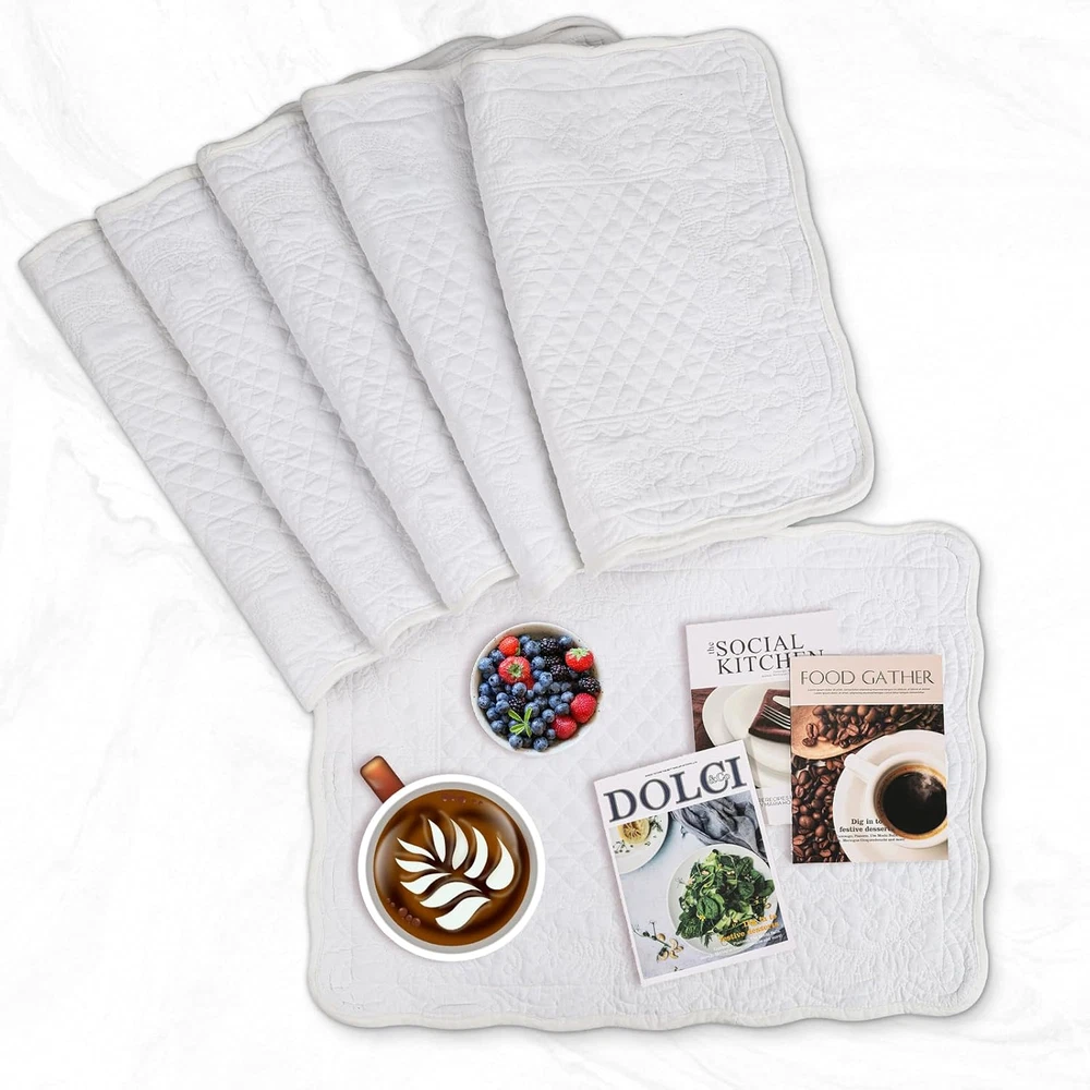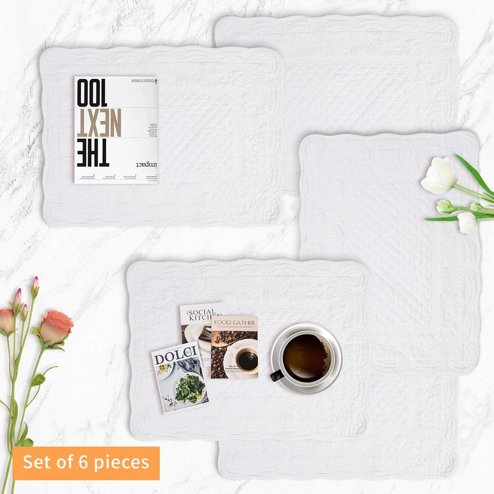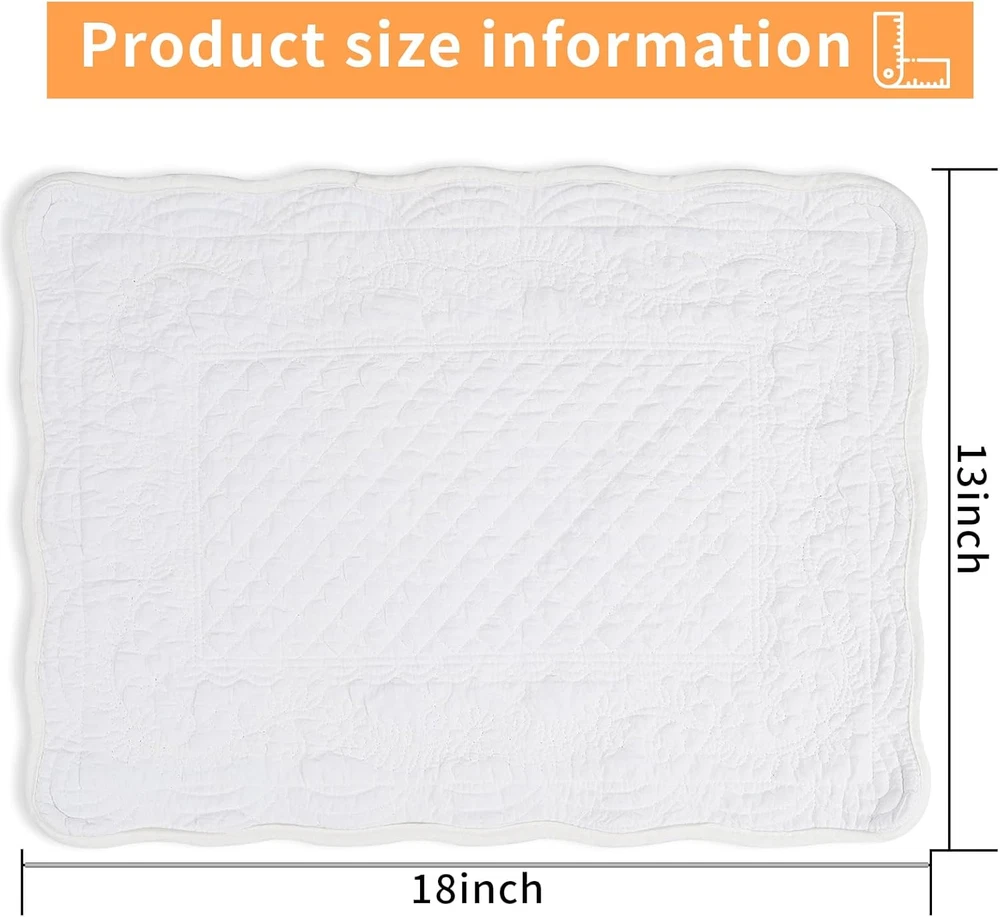 Store New Arrivals Add to Favorite View Feedback Contact White 100% Cotton Quilted Placemats Set of 6, Rectangular Placemats Machine Description Color White Brand Lxztayuk Material Cotton Country of Origin China Item Weight 1.21 pounds Shape Rectangular Size 13"x18" Occasion Easter, Christmas, Birthday, Thanksgiving Number of Pieces 6 Product Dimensions 18"L x 13"W Product Care Instructions Machine Wash Manufacturer Lxztayuk 6 PIECE PLACEMAT SET:Each placemat measures 13"X18“; Dress your table up or down for everyday dining or for special occasions. DOUBLE SIDED DESIGN:Rectangular placemats are made of 100% Cotton quilted double sided padded design, both sides can be used. Available in a variety of colors, perfect for business gatherings, holiday parties and family dinners. WILDELY USED:Rectangular placemats for any theme (indoor and outdoor) Great for dining tables, home kitchens, restaurants, potlucks, birthday parties, offices, dens, coffee shops, outdoor barbecues. Our colorfast wrinkle resistant quilted placemats allow your dinnerware to stand out. ENHANCE YOUR HOME:Our placemats aren't just for your tabletop; Mix natural texture and rustic charm into the rest of your home by placing lush potted plants atop our placemats in the foyer or on entryway tables to add warmth and style to your home. EASY TO CARE:100% Cotton placemats; Machine wash in cold water separately, gentle cycle, lay flat to dry; Low iron if needed; Cotton may shrink, remove from dryer while slightly damp and lay flat to finish drying. Product Description 6 PIECE PLACEMAT SET -- Each placemat measures 13"X18“; Dress your table up or down for everyday dining or for special occasions. ENHANCE YOUR HOME -- Our placemats aren't just for your tabletop; Mix natural texture and rustic charm into the rest of your home by placing lush potted plants atop our placemats in the foyer or on entryway tables to add warmth and style to your home. DOUBLE SIDED DESIGN Rectangular placemats are made of 100% Cotton quilted double sided padded design, both sides can be used. Available in a variety of colors, perfect for business gatherings, holiday parties and family dinners. EASY TO CARE 100% Cotton placemats; Machine wash in cold water separately, gentle cycle, lay flat to dry; Low iron if needed; Cotton may shrink, remove from dryer while slightly damp and lay flat to finish drying. WILDELY USED Rectangular placemats for any theme (indoor and outdoor) Great for dining tables, home kitchens, restaurants, potlucks, birthday parties, offices, dens, coffee shops, outdoor barbecues. Our colorfast wrinkle resistant quilted placemats allow your dinnerware to stand out. ABOUT US We offer the best prices around on high quality products. Our E-store includes media such as books, movies, music and games while offering electronics, toys, sporting apparel, clothing, tools, general home, garden items and more. SHIPPING We are always working hard to ensure your package arrives as soon as possible. Please understand that some factors like weather, high postal traffic, and the performance of shipping companies are outside of our control. We offer free shipping to the lower 48 states and ship within 2 business days of payment, usually sooner. We do not accept P.O. Boxes. Please provide a physical address. RETURNS We offer a 30-Day Return Policy on items which you are not completely satisfied with. You have the option for a full-refund or an exchange of the item. No returns are available on items shipped outside of the USA. PAYMENT We accept PayPal. CONTACT US This page content is yet to come Please ad us to your favorite seller and visit again later Thank You CUSTOMER SATISFACTION We try our very best to make sure every customer is completely satisfied. If there's a problem, message us! We're happy to help.