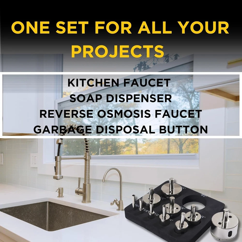 Juego de 10 brocas de diamante: Brocas de diamante de alta calidad con revestimiento de diamante; tamaños: 1/4, 3/8, 1/2, 3/4, 1, 1-1/4, 1-3/8, 1-1/2, 1-3/4 y 2 pulgadas; incluye guía para brocas de diamante. Ideal para trabajar con azulejos: El juego de 10 brocas de diamante para azulejos realiza cortes circulares perfectos; nuestro juego de brocas de diamante para azulejos es un excelente reemplazo para un cortador de azulejos. Brocas de diamante para macetas de cerámica: Crea tu propia maceta; nuestro juego de brocas para cerámica te ayuda a hacer agujeros de drenaje para tus plantas; el juego de 10 brocas de diamante para macetas tiene el tamaño adecuado para cualquier maceta. Brocas de diamante para vidrio: Nuestro exclusivo juego de brocas de diamante para macetas te ayuda a hacer agujeros perfectos en vidrio; ya sea como broca para botellas o para un proyecto de pecera. Incluye un juego completo de brocas para vidrio con revestimiento de diamante duradero. Juego de 10 brocas para baldosas de cerámica: Juego completo con estuche con cremallera y guía de brocas; incluye 10 tamaños de brocas para baldosas de cerámica; este juego de sierras de corona para baldosas de cerámica es esencial para cualquier proyecto de azulejos. Brocas de acero de aleación sólida para baldosas de porcelana: Nuestro kit de sierras de corona para baldosas con brocas de diamante para baldosas de porcelana ofrece resultados perfectos; las brocas para baldosas con triple revestimiento de diamante son fáciles de usar y mantener. Brocas de diamante para piedra: Brocas para granito fáciles de usar con la guía de sierra de corona de diamante incluida; perforar agujeros en encimeras de granito es casi demasiado fácil; nuestro kit de sierra de corona para granito atraviesa cuarzo, mármol o granito.