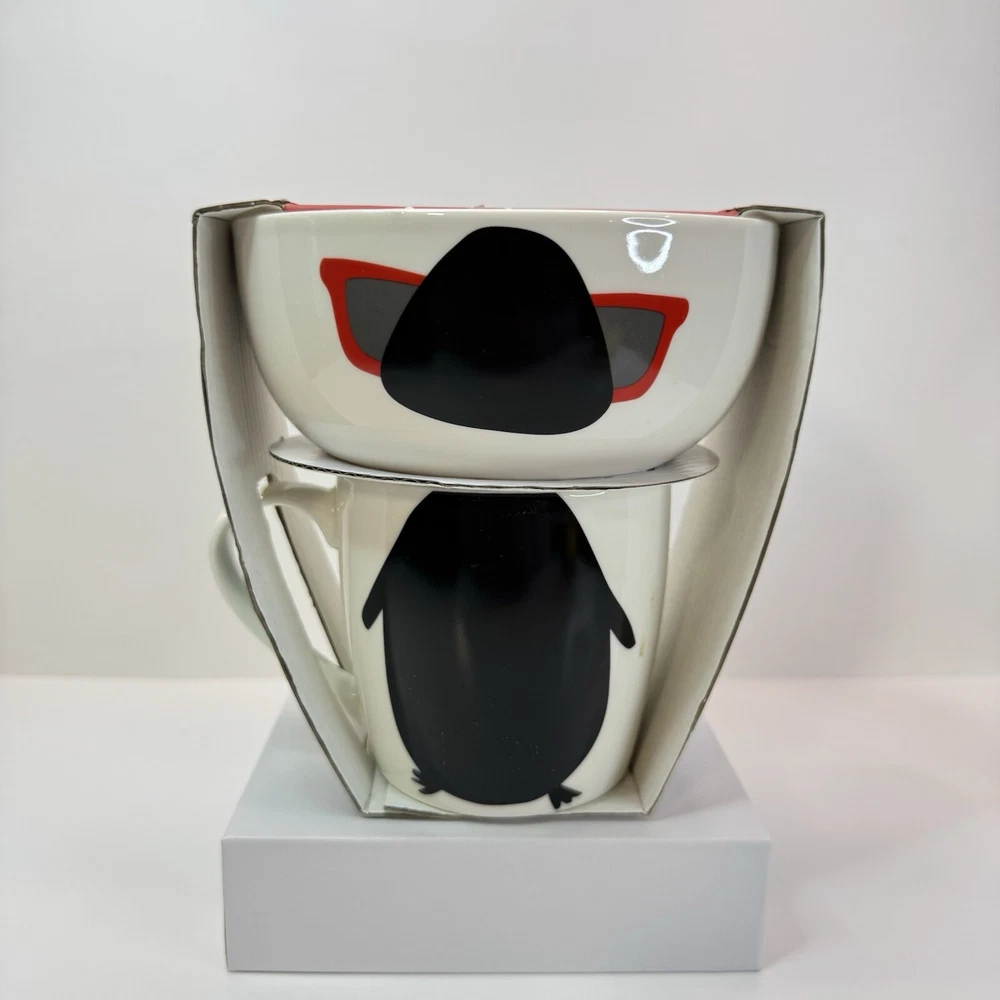 The Penguin Mug and Bowl Matching Set is a charming addition to your kitchen, featuring a white coffee mug and bowl with a playful "Cooler Than You" design. The set includes a matching mug, perfect for enjoying your favorite hot beverages in style. This set is a great gift idea for anyone who loves penguins or enjoys a touch of whimsy in their kitchen decor.