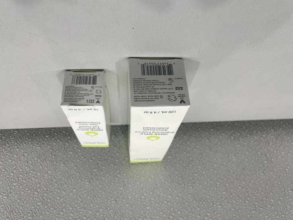 ebay template Juice Beauty Green Apple Brightening Essence + Green Apple Brightening Eye Cream Item Specifics: Size: Brightening essence 120ml/ 4fl oz, Brightening eye cream 15ml/.5 fl oz Condition: New other, open box with original distressed packaging Features: The Green Apple Brightening Eye Cream 15ml: Smooths appearance of fine lines and creates firmer looking skin Vegan Visibly reduces the appearance of wrinkles and brightens the eye area The Green Apple Brightening Essence 120ml: Soothes skin and reduces the appearance of redness Reduces appearance of pores, dark spots and discoloration Vegan Cargo Largo is not sponsored by or affiliated with the brands associated with the products being sold. Packaging Condition: Original distressed packaging All dimensions are approximate This item cannot be shipped out of the United States! Cargo Largo is not sponsored by or affiliated with the brand associated with the product being sold. Contact Seller If you have any questions, please use the “Contact Seller” link in the upper right section of the listing. Our business hours are 8:00 AM - 3:30 PM Monday-Friday (Central Time). Sales completed and emails received after normal business hours may be handled the next business day. Shipping Policy We ONLY ship within the lower 48 United States. We ONLY ship to the address selected by the customer at checkout. Buyers MAY NOT arrange their own shipping. ALL orders with total value of $250 or more WILL require a delivery signature. For this item, we DO NOT offer combined shipping with other listings. Location We offer local pickup for all our eBay auction items. To request local pickup for items you have won, please send us a message asking for “pick up” and we will send you an eBay invoice with your total. All local pickup orders MUST be paid within 8 DAYS after the listing ended per eBay policy. The payment total will include Missouri sales tax AND a $4 handling fee per item. Non-Missouri residents will need to pay IN PERSON (credit/debit cards only) within 4 days after the listing ended. Buy It Now items are NOT eligible for local pickup. Paid items must be picked up within 10 DAYS after the end of the listing. If not, your order will be cancelled and refunded. Social distancing policies WILL be enforced during pickups. Local Pickup Location 7460 Stadium Drive Kansas City, MO 64129 Pickup Hours SUNDAY MONDAY TUESDAY WEDNESDAY THURSDAY FRIDAY SATURDAY CLOSED 11am-6pm 7:30am-4pm CLOSED 7:30am-4pm 7:30am-6pm CLOSED Return Policy We are not an authorized dealer of this product and any warranty included with the product may not be honored by the manufacturer. If you believe that the item purchased from us does not match the item description, or if your item was damaged during transit, please contact us to discuss return and refund options. In order to initiate the refund process, buyer must contact us within 30 Days of receipt of item. All returns will require a return authorization. Please note that we will only pay return shipping if our listing does not accurately reflect the specifications or condition of the item received. If you wish to return an item for any other reason, we will accept a return on MOST items, provided that the item is returned to us in the same condition and within 30 Days. This applies to both the item and retail packaging. Buyer will be responsible for both original and return shipping charges Seller will initiate this transaction and refund the buyer once the item has been received AND agreed to the mutual cancellation. We DO NOT accept any returns on swimsuits, undergarments, stockings, lingerie, or any item marked AS IS for any reason other than a grievous error in the listing. Please bid accordingly on all items listed AS IS. Payments Cargo Largo requires payment within four (4) days. (Please note that this is real-time, beginning when the auction ends.) If payment has still not been received by the fourth (4th) day after the end of the auction, Cargo Largo will relist the item. Most states require the collection of SALES TAX on online sales by remote sellers. We will abide by all local, state and federal tax codes and buyer should check their state and locality for tax liability. Residents of Missouri and all buyers who pick their item(s) up locally are required to pay Missouri sales tax on all items. Sell Smarter with Kyozou. Inventory and Ecommerce Management
