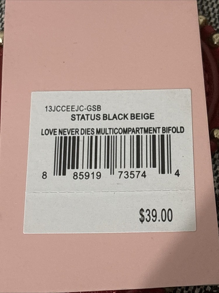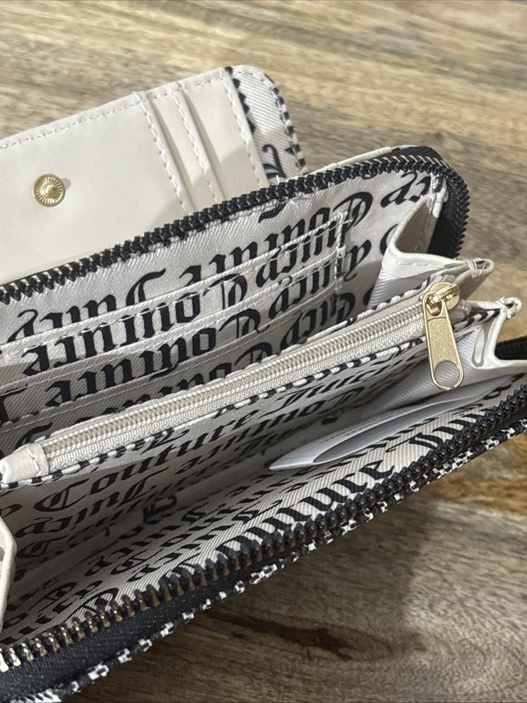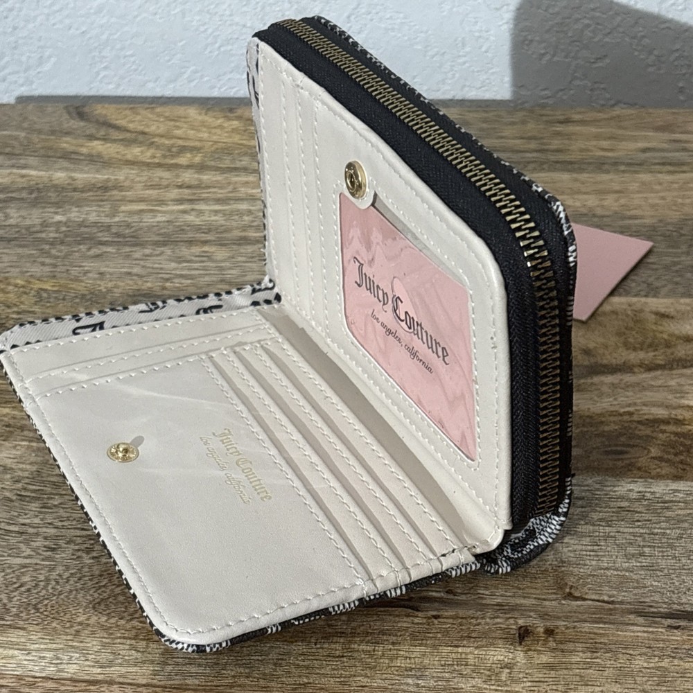 Brand new with tags Juicy Couture Love Never Dies Status Black Multi Compartments BiFold Wallet. Juicy logo with red heart on front. Holds credit cards and has a zipper compartment. Measures: 6” W X 4” T From a smoke-free home.