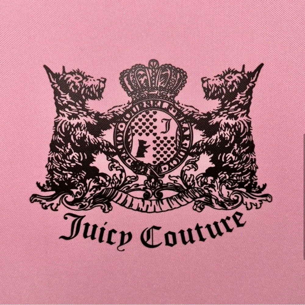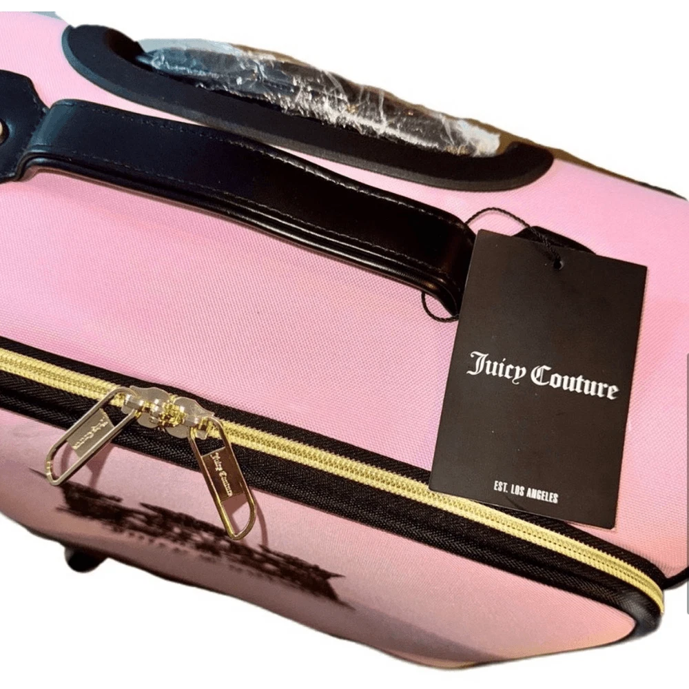 NWT - Juicy Couture Pink Twig Dog Carry On 21” Luggage 8 Wheeled Spinner Suitcase. Very HTF and RARE JC carry-on only sold overseas. A stylish wheeled piece of luggage in a soft pink color and perfectly sized to carry-on your flight. Made of high-quality textile material, it provides durability and elegance. The thoughtfully designed interior allows for convenient and secure organization. BRAND NEW, never been used, flawless condition. •Pink Fabric Exterior w/ Black Logo •4 Double Swivel Wheels •Telescopic Handle •Gold-Tone Hardware •Double Zipper Closure •Logo Print Fabric Lined Interior •2 Clothing Safety Belts / Buckle Straps •Zip-Close Compartment •Measures Approx. 14.0"L x 21.0”H x 8.0"D •Approx. Weight: 4.5 LBs