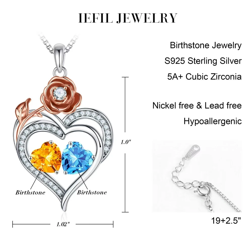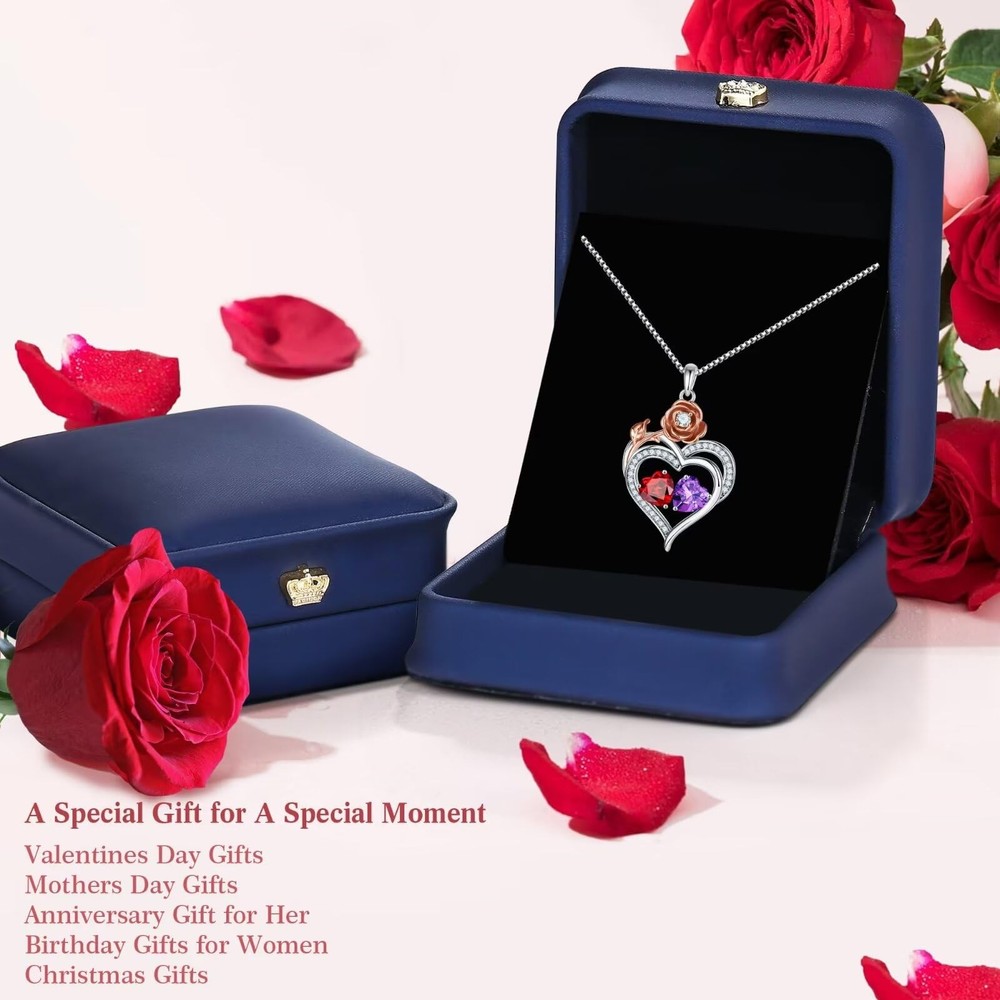 Rose Heart Birthstone Necklace BIRTHDAY FOR WOMEN: Suitable for any gift occasion. Perfect Gift for Birthday, Christmas, Mother's Day, Thanksgiving, Graduation, Wedding, Valentine's Day Features: Material: High Quality 925 Sterling Silver Finish: The look of the birthstone necklace is very nice. No tarnish, No Irritation, Hypoallergenic Rose Birthstone Necklace. For women and girls Jewelry Care Tips: *Keep away from chemicals, sweat, bath, crash to avoid damage. * Rub the first stud earrings with a polishing cloth to bring back the shine. Product Details: Package included:Delicate cross necklace in a beautiful gift box. Buy with confidence! Thank you for visiting Jewelry. is committed to provide the best jewelry and the best customer service to our customers. If you have any questions about birthstone necklaces for women, please contact us. ROSE FLOWER HEART DESIGN: The unique rose heart design symbolizes eternal love, when she wears this necklace, she will be reminded of your love and all the laughter. The chain length is 18"+2", suitable for most women. GIFTS FOR WOMEN: The double heart necklace represents the two of you forever tightly held together. This unique rose heart birthstone necklace is the perfect gift for women, mother, grandmas, aunts, sisters, friends, wives. Manufacturer Minimum Age:6+ MATERIAL: 925 STERLING SILVER double heart necklace for women rose heart pendant has a lasting layer of protection that minimizes scratches and tarnish-resistant. DAINTY GIFT PACKAGE: The pendant necklace comes with an elegant gift box. Unique Great Mothers Day special gift as a gift for her - your mother, wife, grandma, sister, Aunt, bonus mom, stepmom. AFTER SALES SERVICE: Any question about your Rose Heart Birthstone Necklace, please contact us and we will answer your question within 24hours.